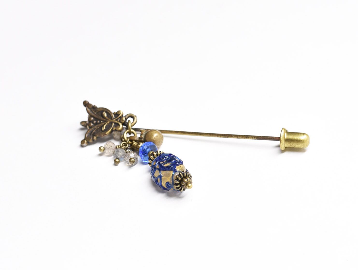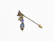 アンティーク瑠璃色トレイルデコレーションの金箔装飾ビーズとラブラドライト、民族鈴のハットピン(再販)