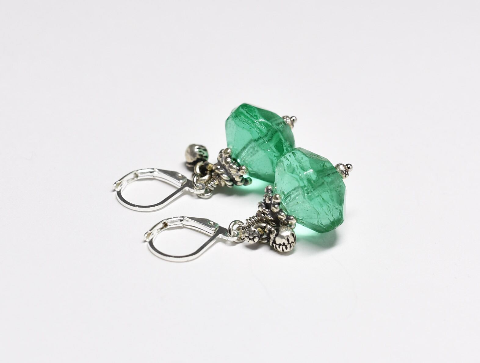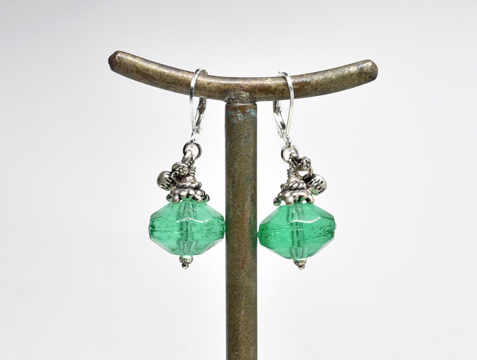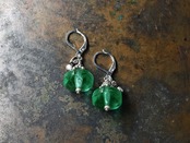 アンティークウランガラスと小さなインドシルバー鈴のピアス