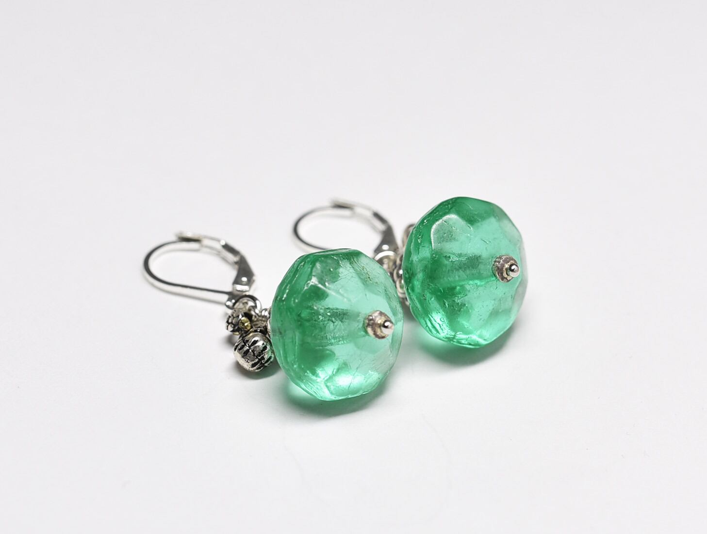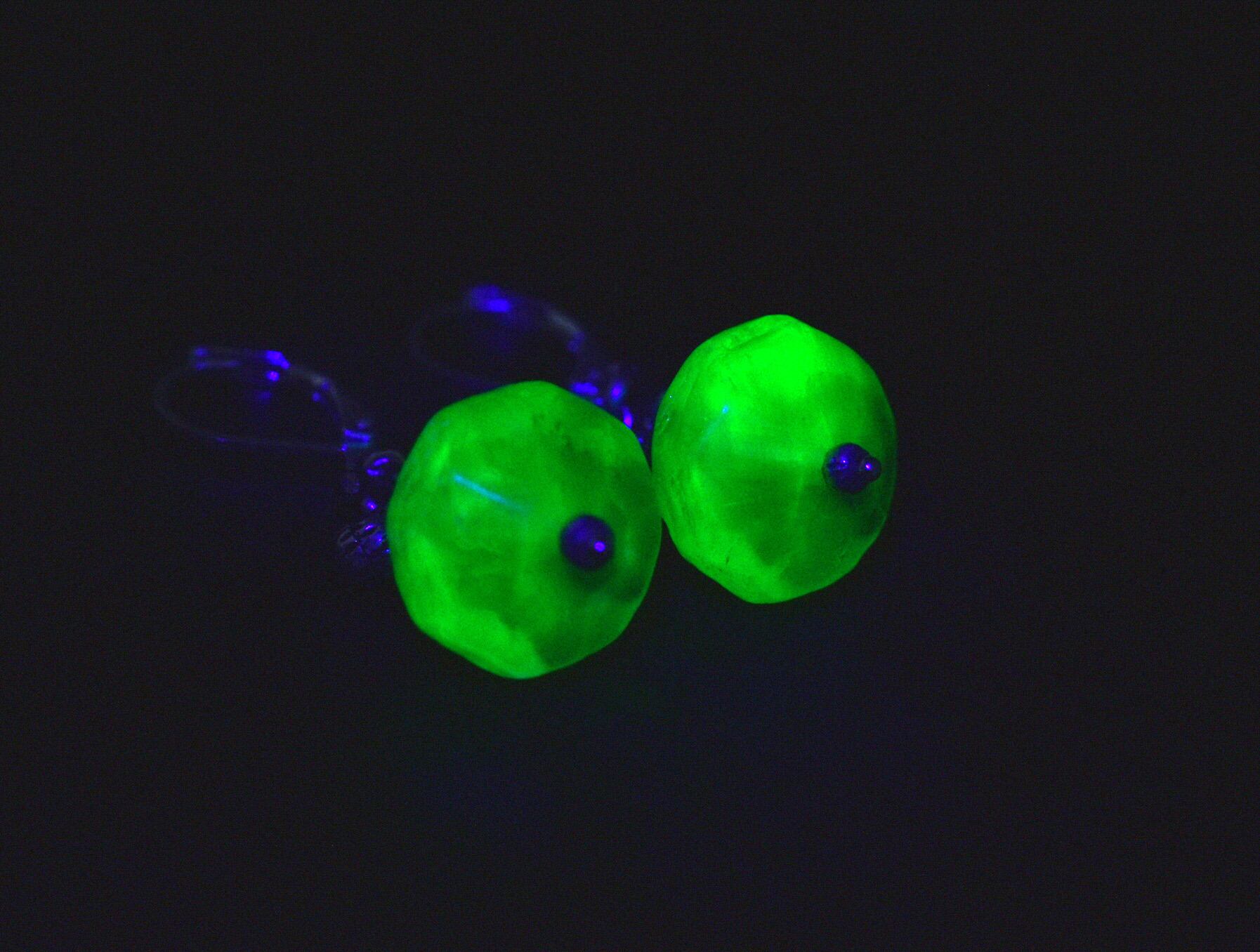 独特なセミクリアグリーンのビーズは、極々微量のウランで発色させています。ブラックライトを当てると光ります!