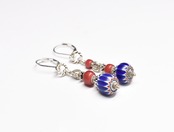 シェブロンビーズと金赤ホワイトハーツ、カレンシルバーのアンシメトリーピアス