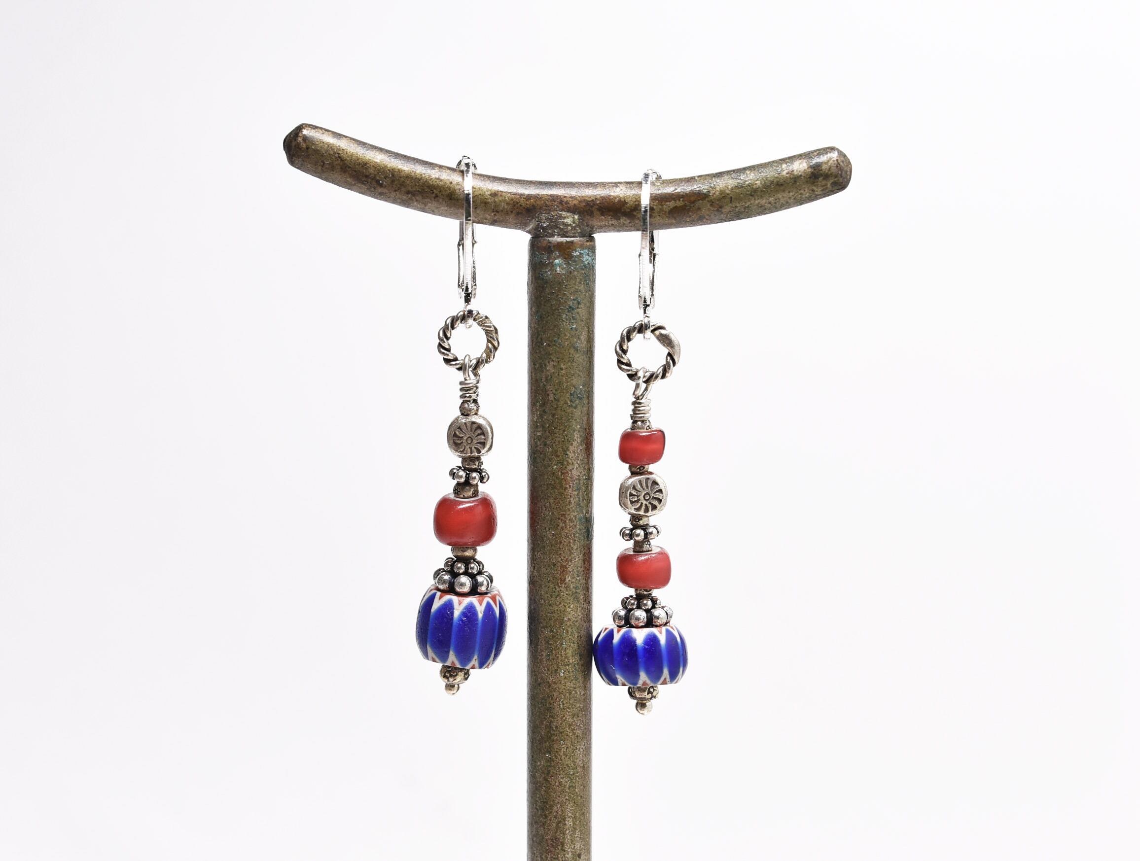 青いビーズはシェブロンと呼ばれるアンティークのベネチアビーズです。こちらは6層構造になっていてます。