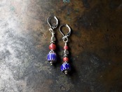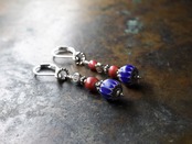 シェブロンビーズと、金赤ホワイトハーツ、カレンシルバーを繋いだアンシメトリーなピアスです。