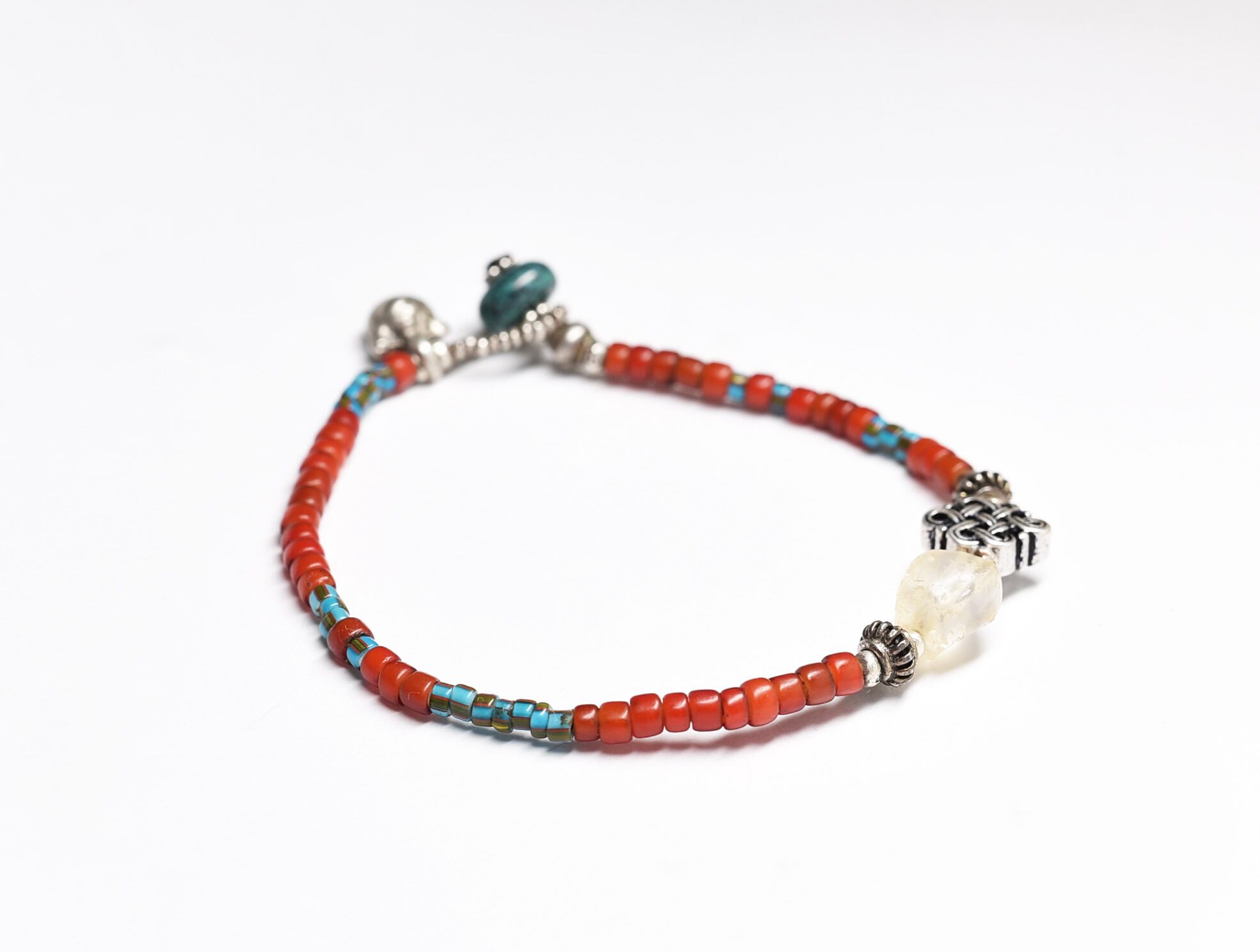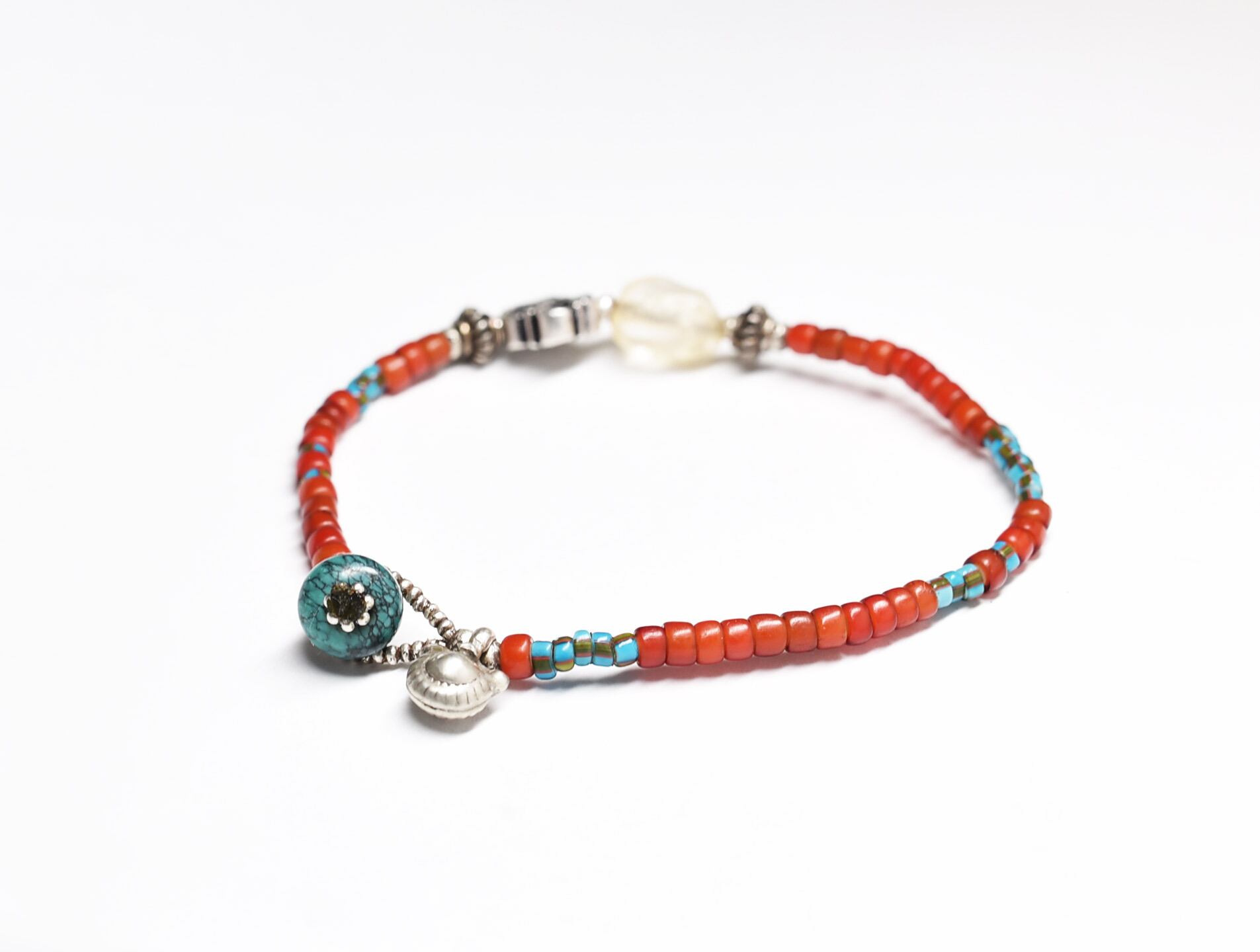 素材:古代水晶、ガラス、インドシルバー、ターコイズ、カレンシルバー、ミックスメタル、ロウビキ紐