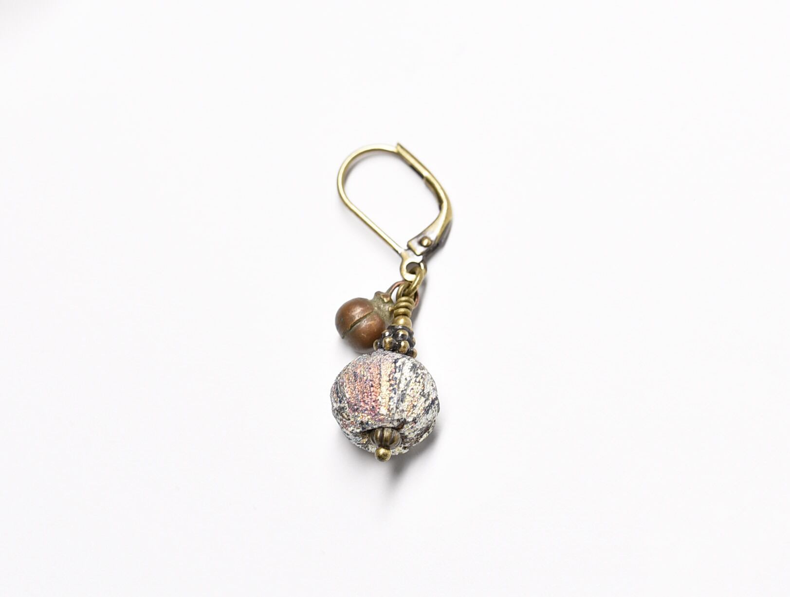 退廃的な銀化ローマングラスビーズと民族鈴の小さな片耳ピアス