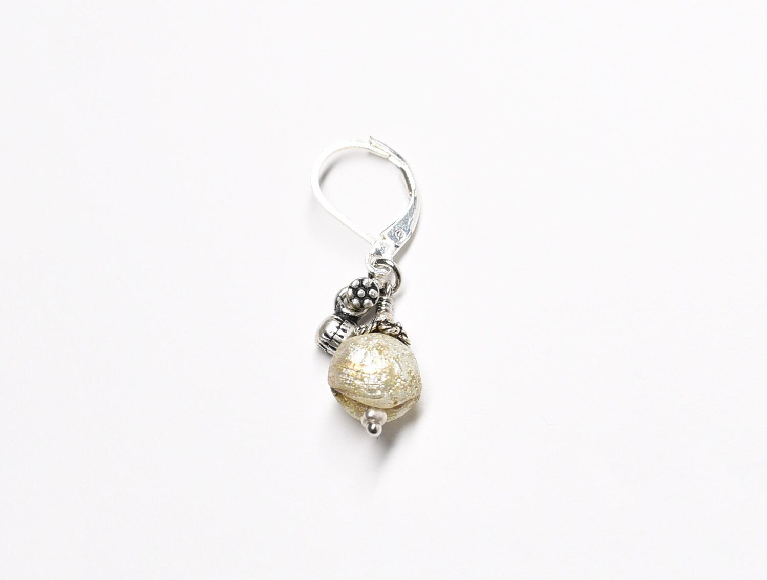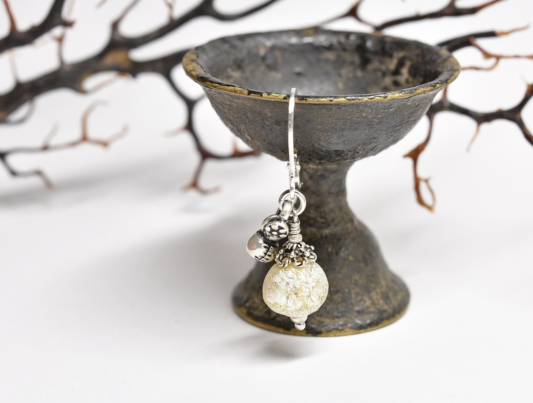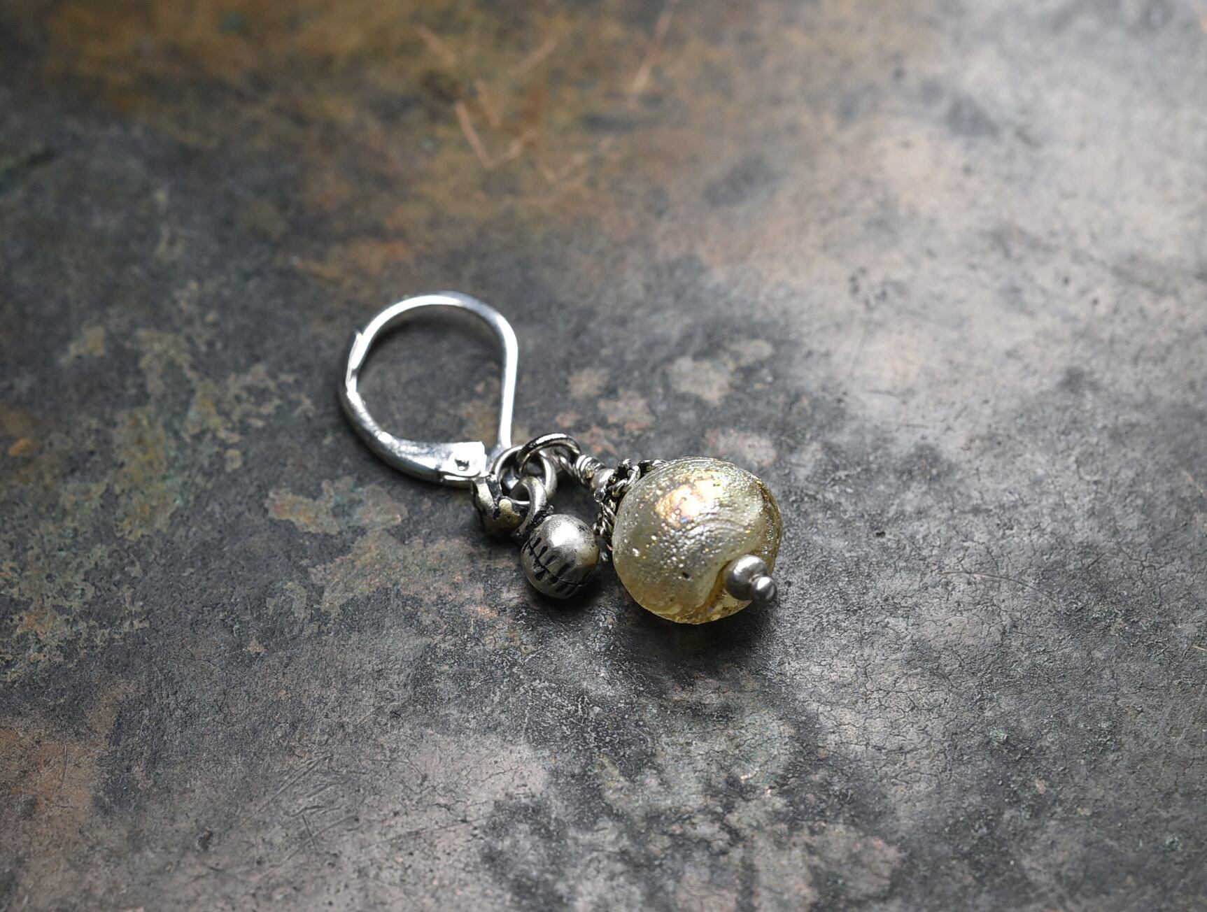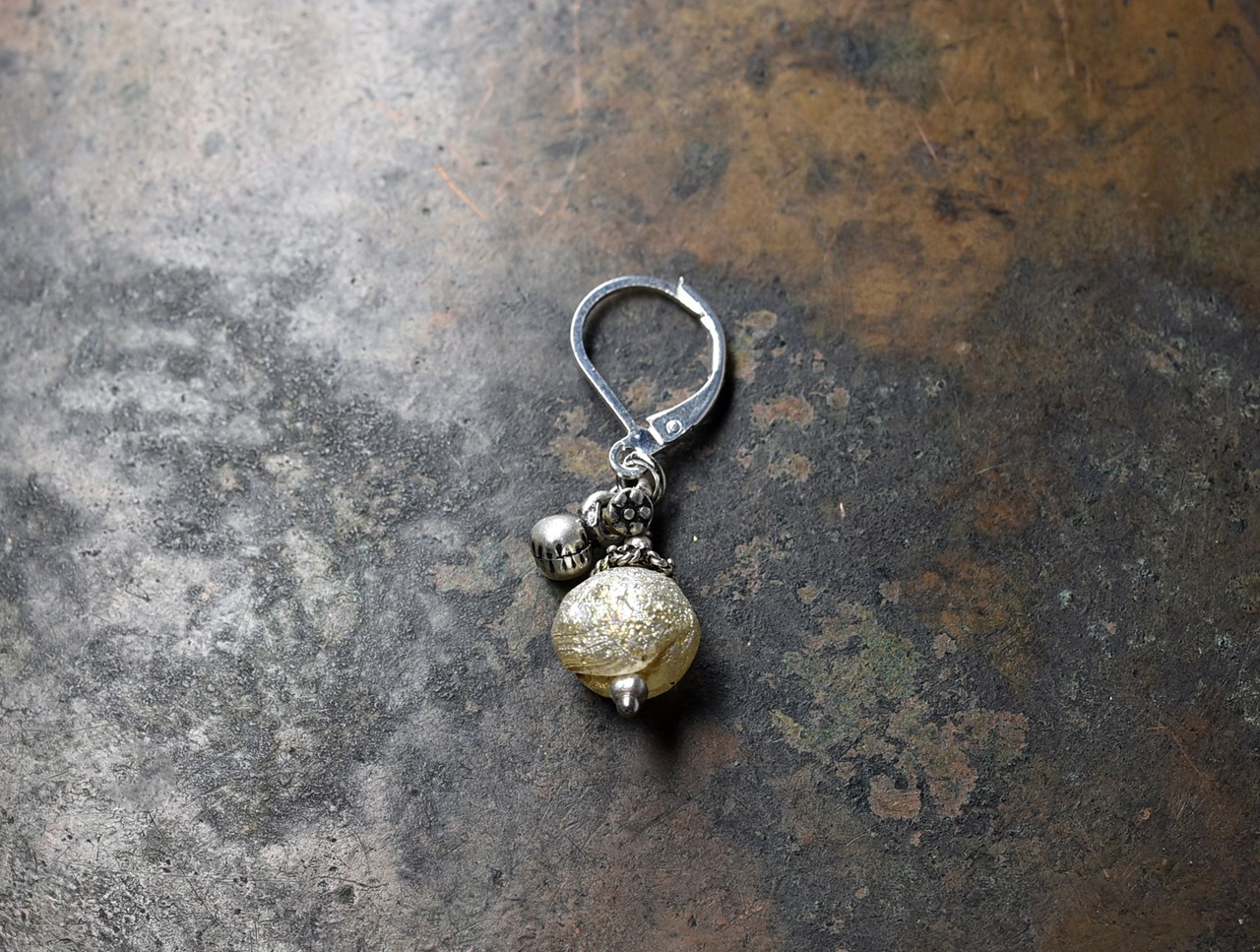 天女の羽衣のような銀化ローマングラスビーズとoldインドシルバー鈴の小さな片耳ピアス