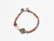チベットトクチャ、古代水晶、古代カーネリアン、飴色&ターコイズブルーホワイトハーツを繋いだブレスです。
