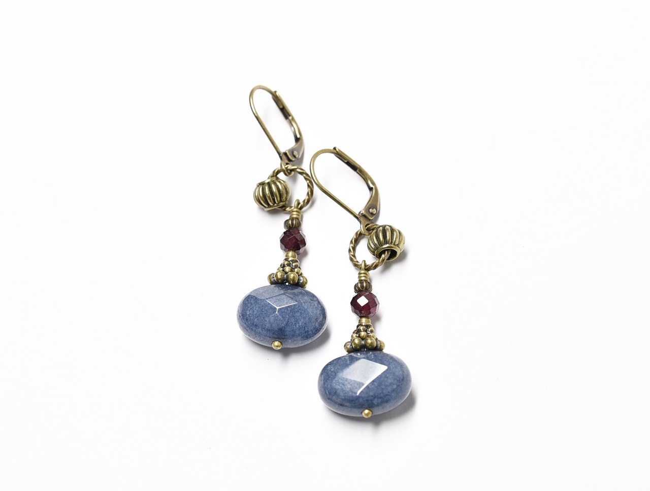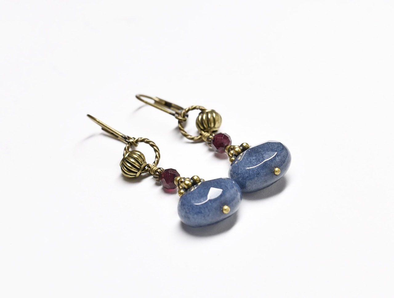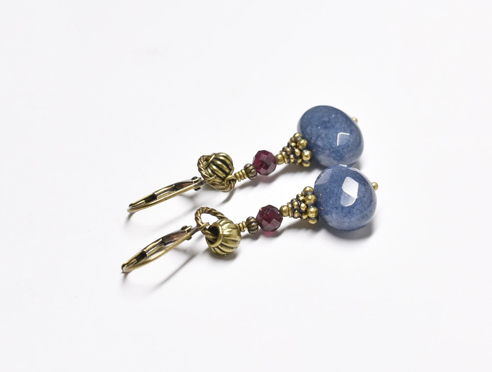 サファイアアゲートとガーネットを少し大き目なリングで繋いだピアスです。