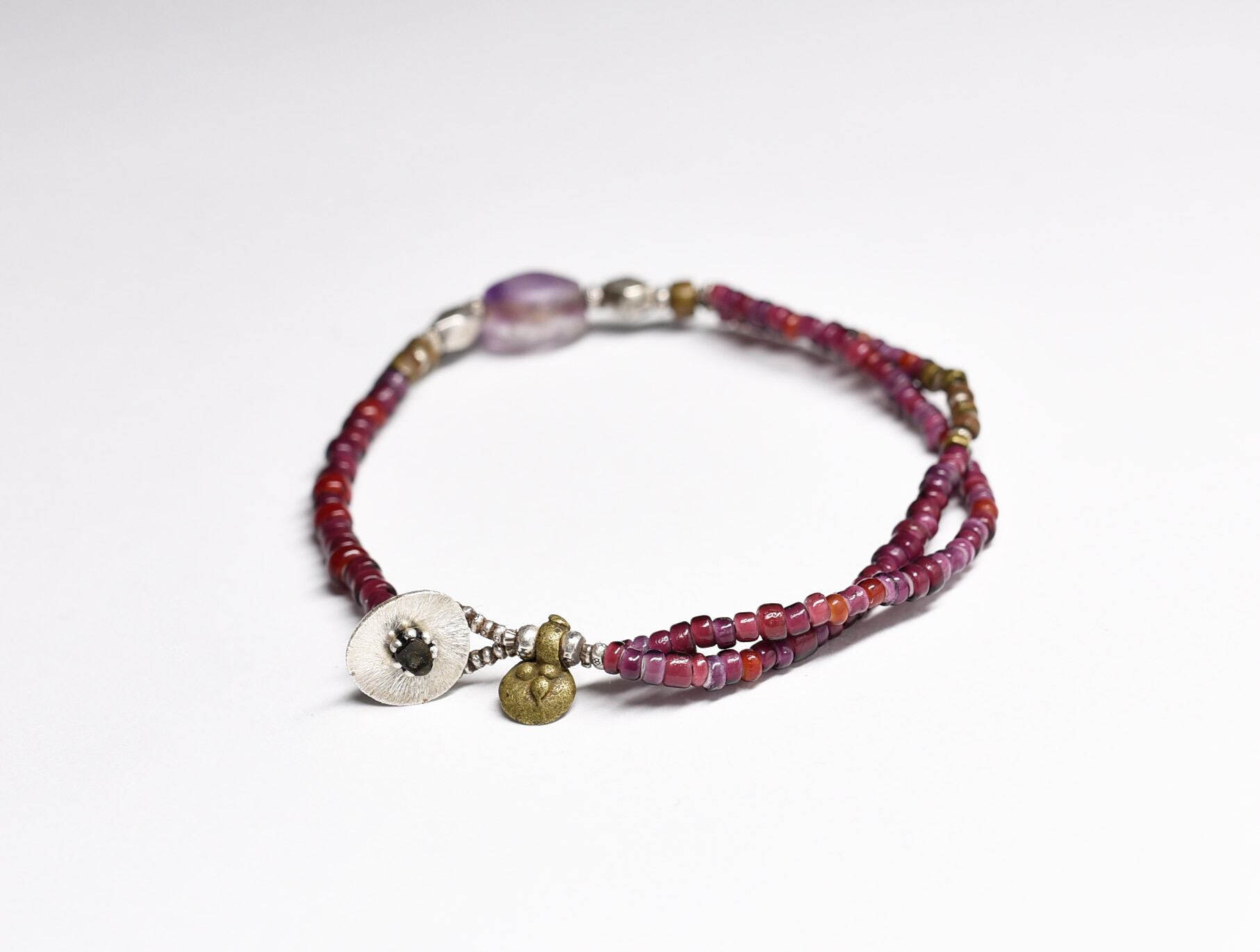 古代アメジストと葡萄色ホワイトハーツ、oldチンシルバー、oldオリッサブラスのブレス