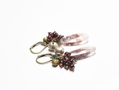 アゲートインクォーツとたわわなガーネット、モスアゲートと民族鈴のピアス(淡)