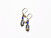 ヴェネチアのアンティークビーズとラピスラズリ、民族鈴を繋いだピアスです。