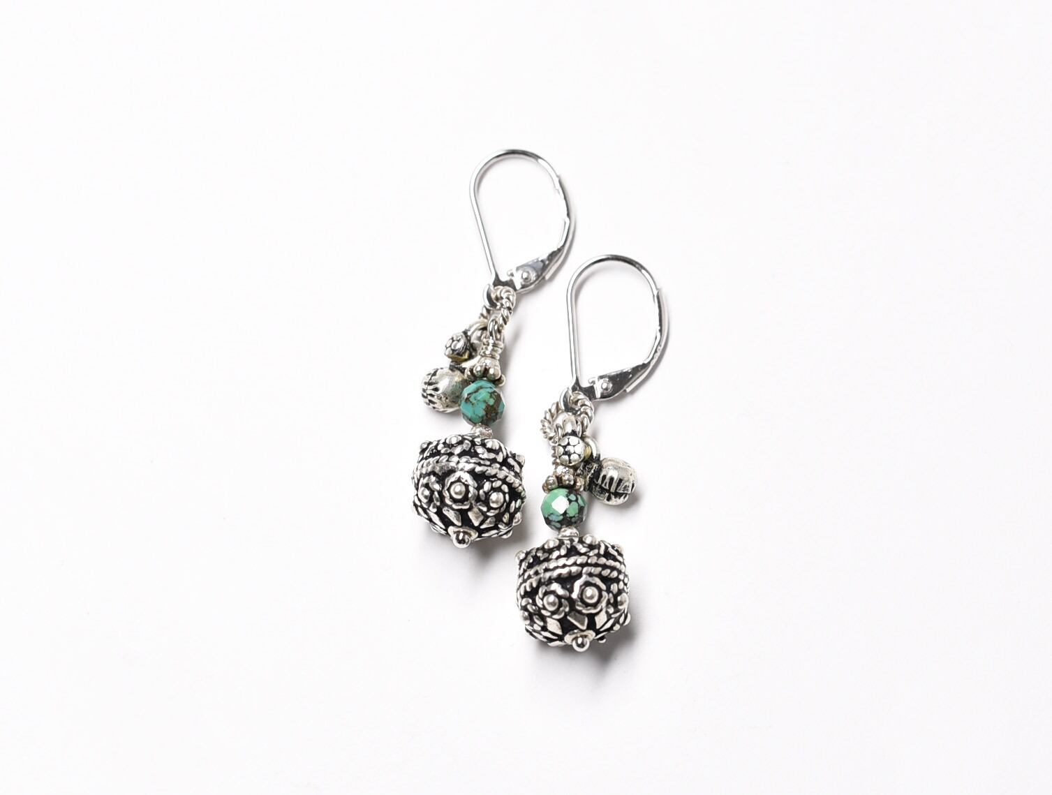 「A様専用」アフガンシルバーとターコイズ、インドシルバーの花装飾小さな鈴のピアス