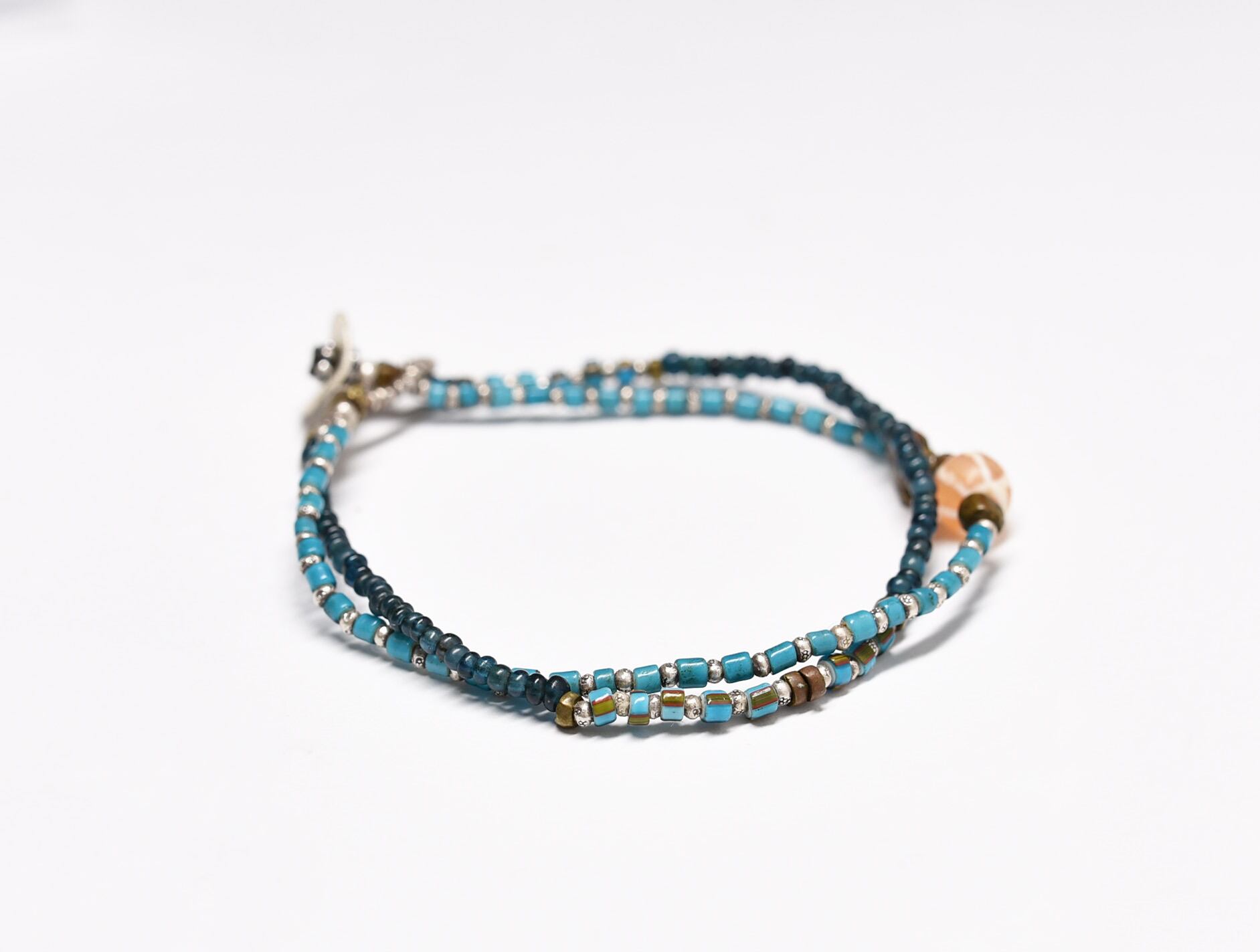 エッチドカーネリアンとインディゴブルービーズ、ターコイズブルーホワイトハーツ、カレンシルバーの2連ブレス