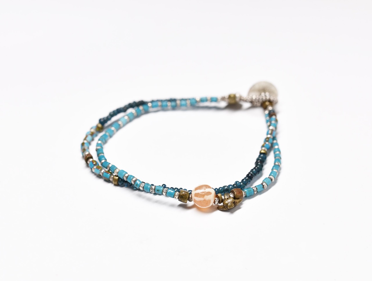 ターコイズブルーのビーズは、芯の部分が白いのでホワイトハーツと呼ばれています。