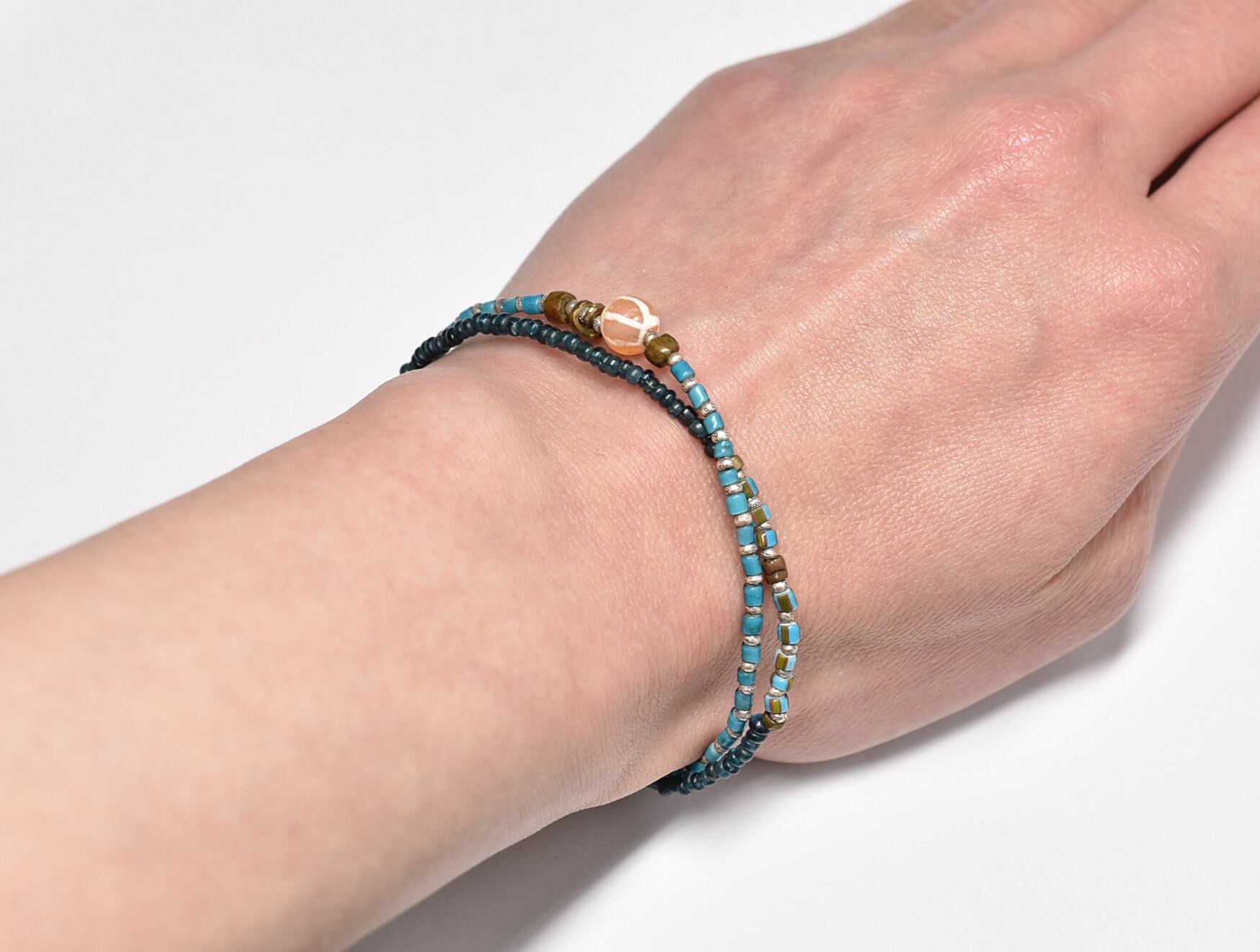 小さめなビーズばかりなのに、存在感があるブレスです。
