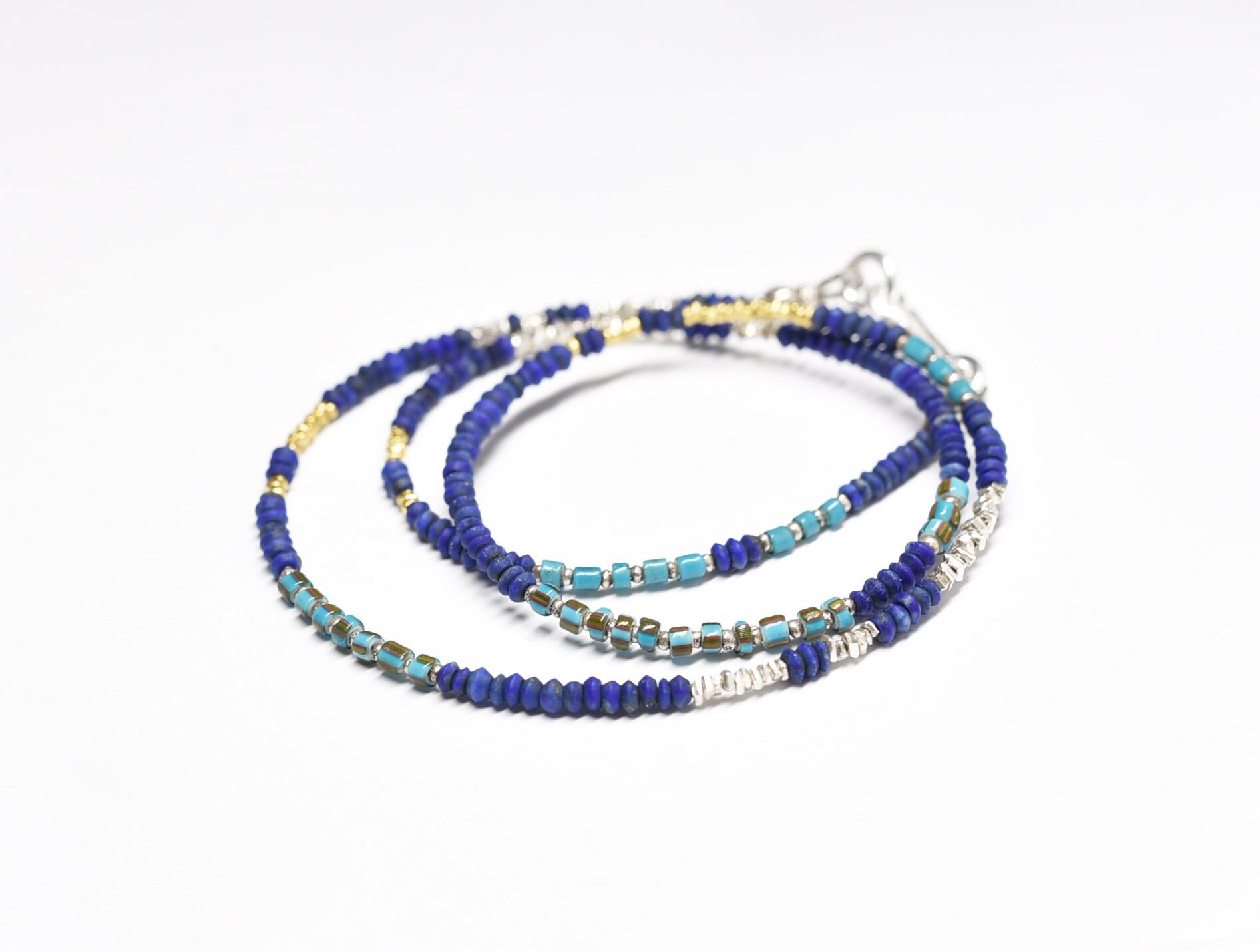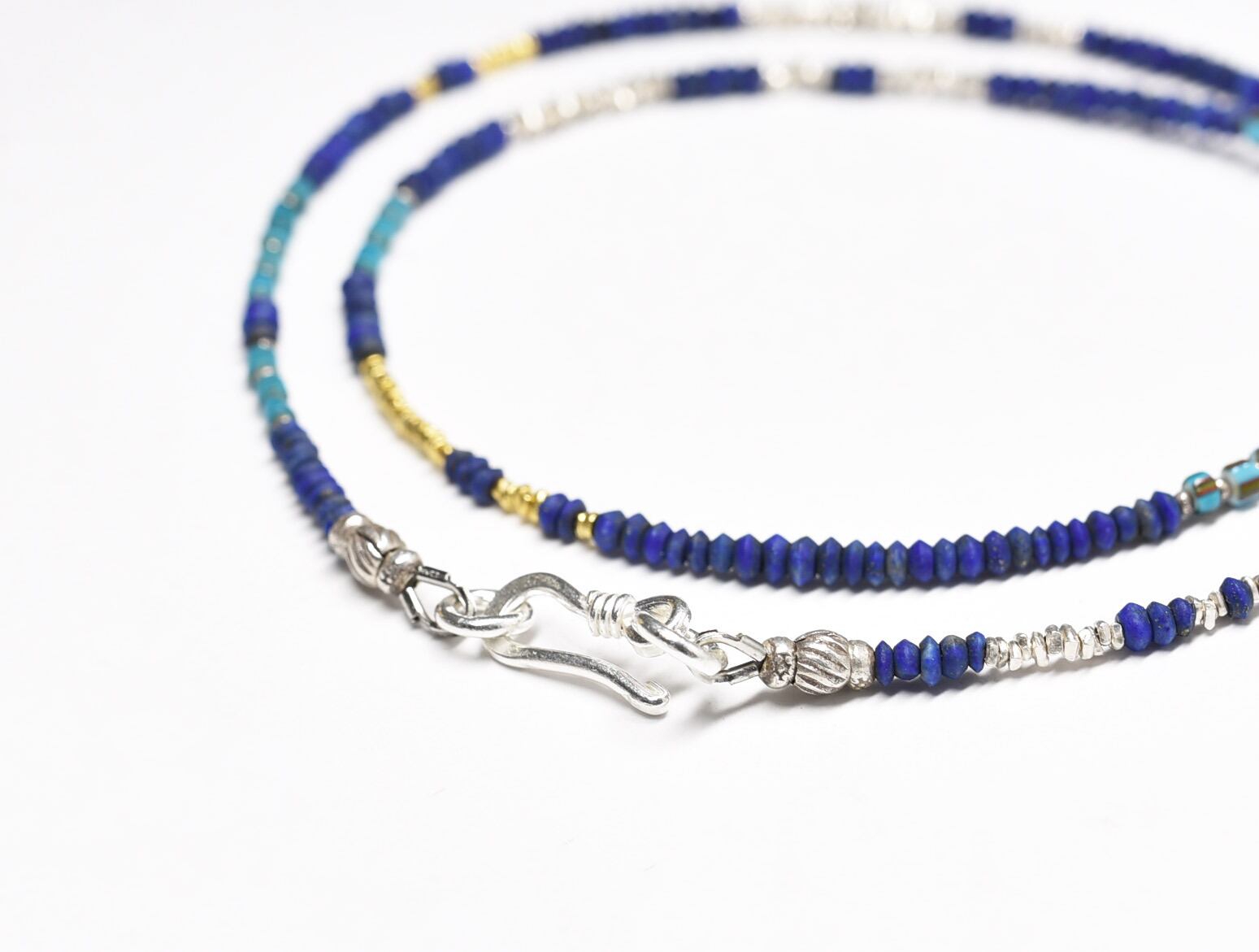 ラピスとターコイズブルーホワイトハーツ、カレンシルバーの華奢なネックレス(再販)