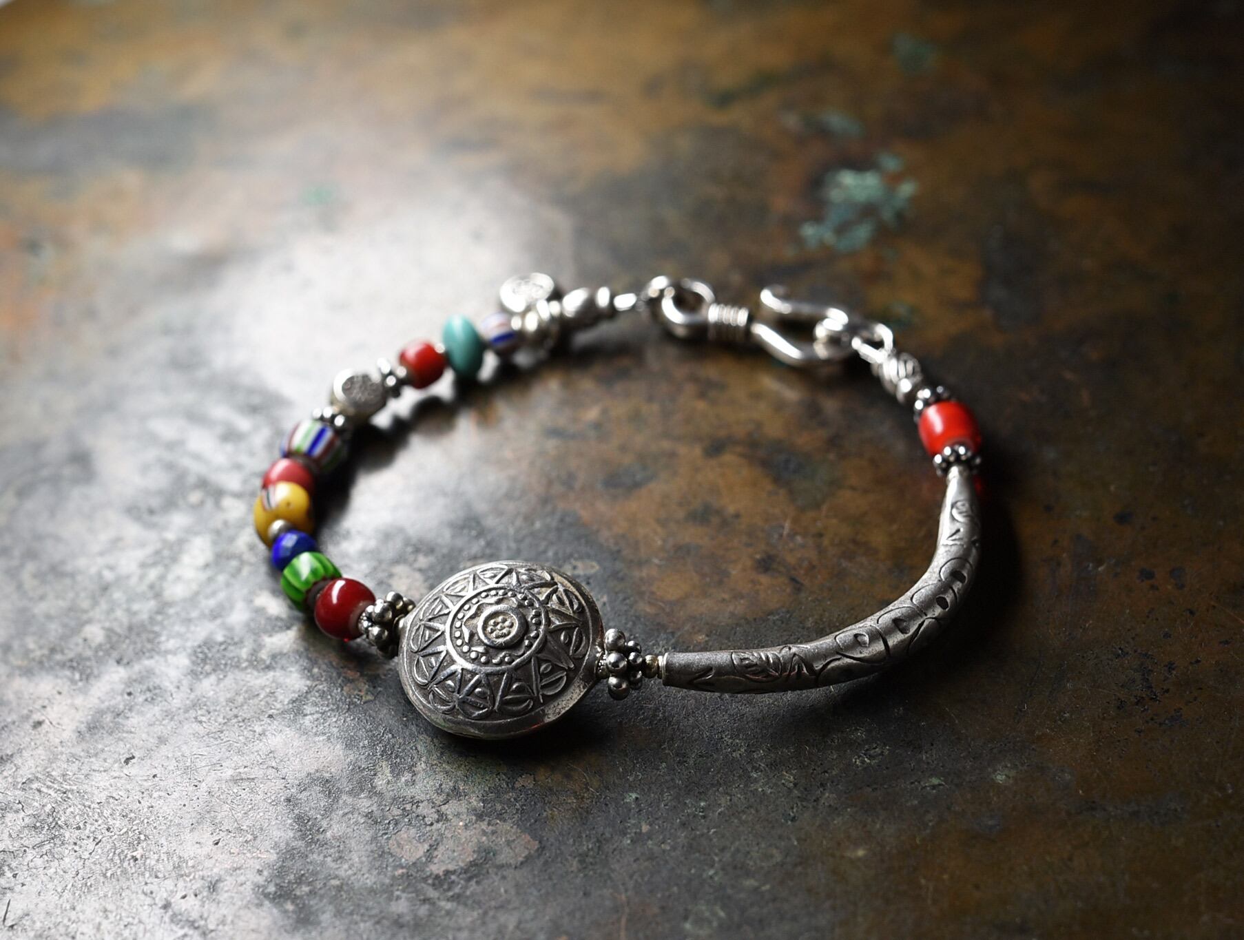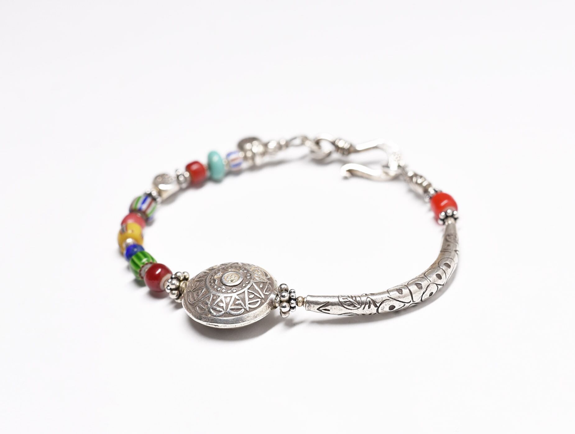 魔法陣のようなカレンシルバー湾曲カレンシルバーとクレイジーミックスアンティークベネチアビーズのブレス