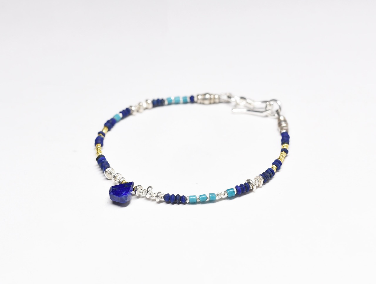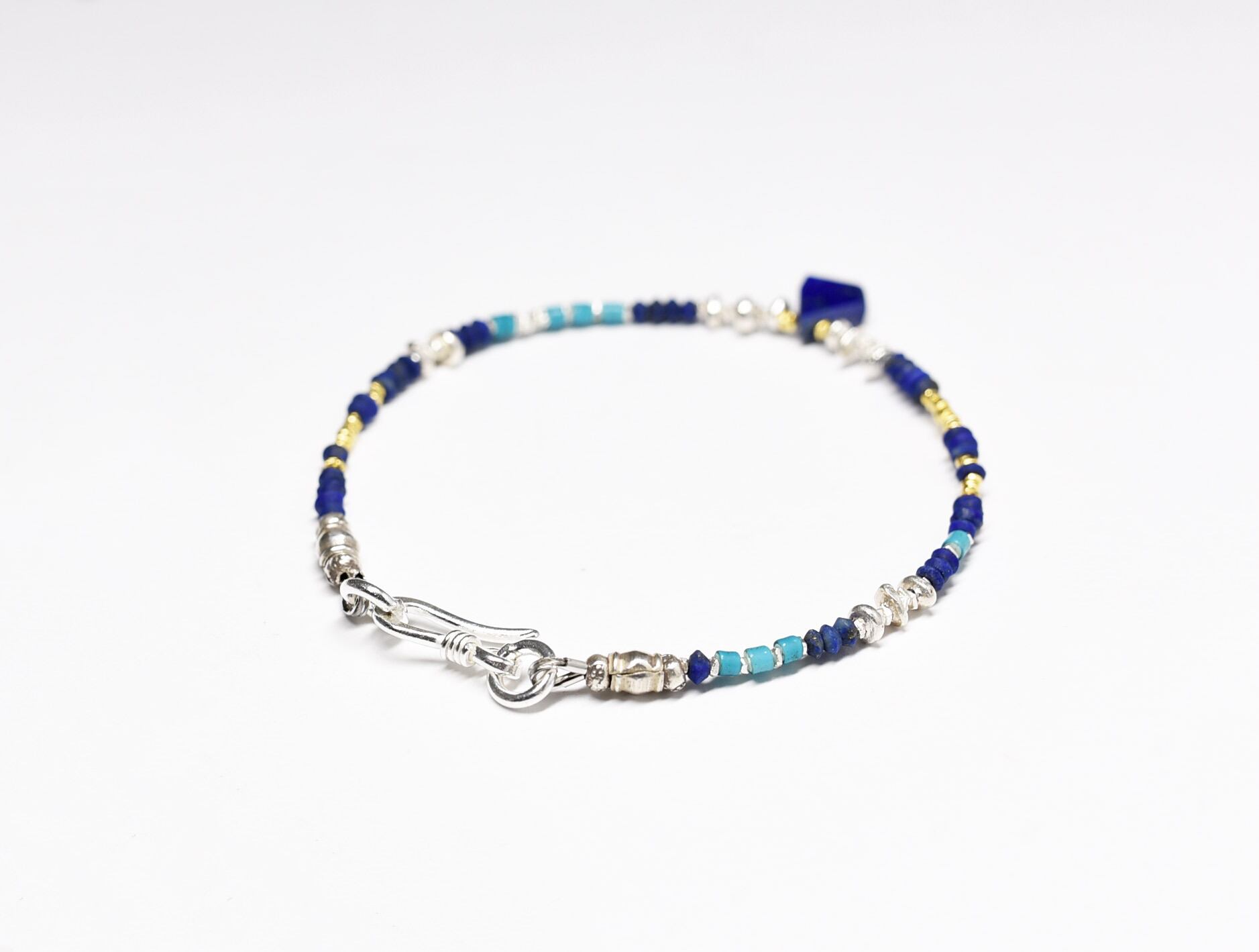 カレンシルバー、ターコイズブルーホワイトハーツとラピスの華奢なブレス