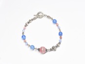 アンティーク金赤マーブルビーズと青藤色ビーズ、ロードナイト、ラブラドライト、ブルー瑪瑙、カレンシルバーを繋いだブレスです。
