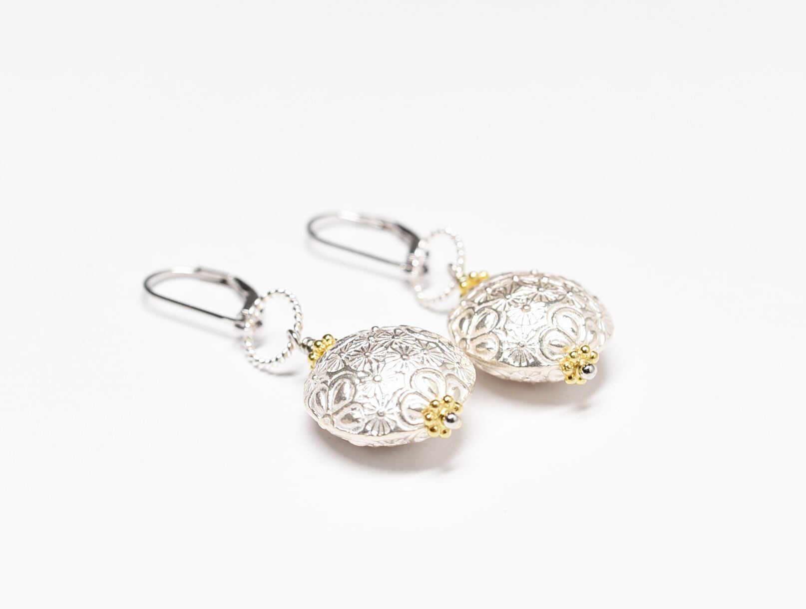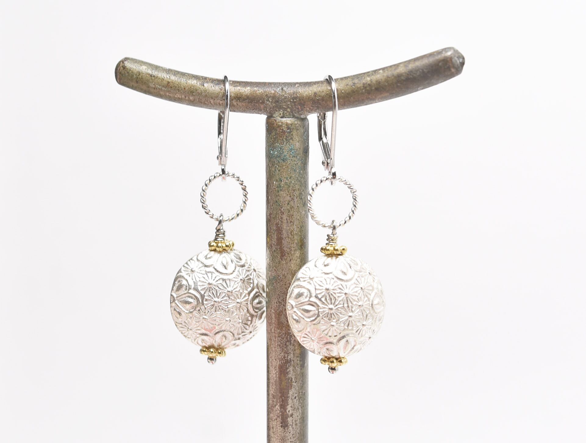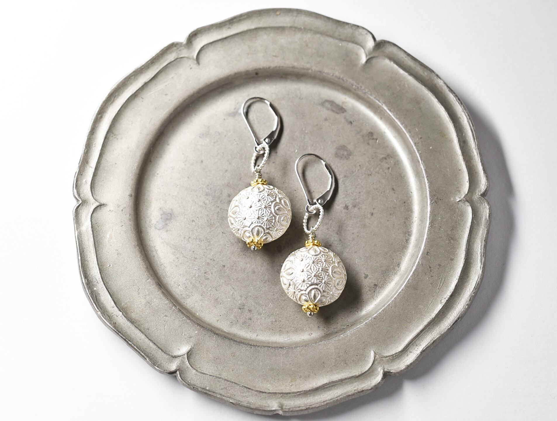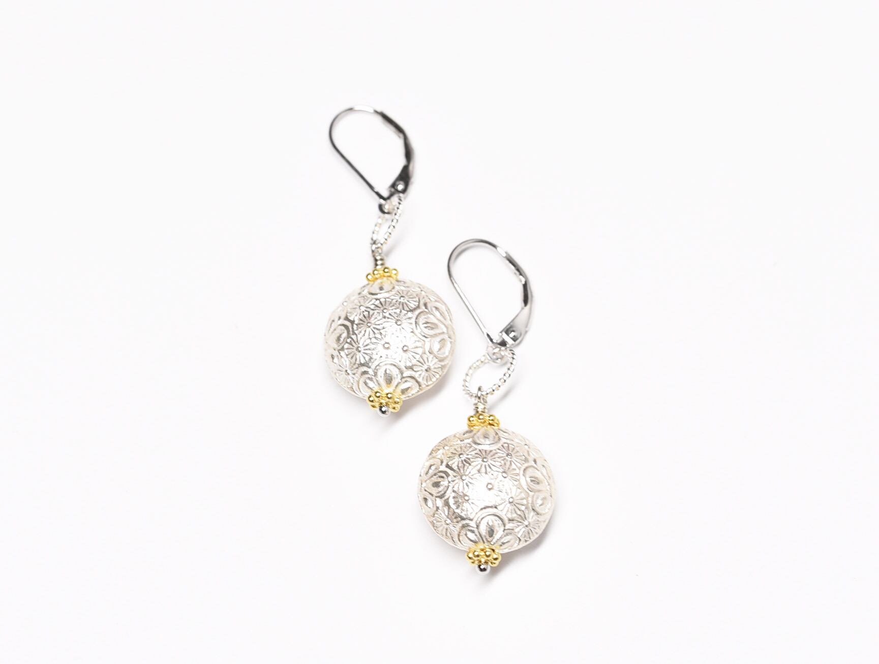 花模様が施されたぷっくりとしたカレンシルバーのピアスです。