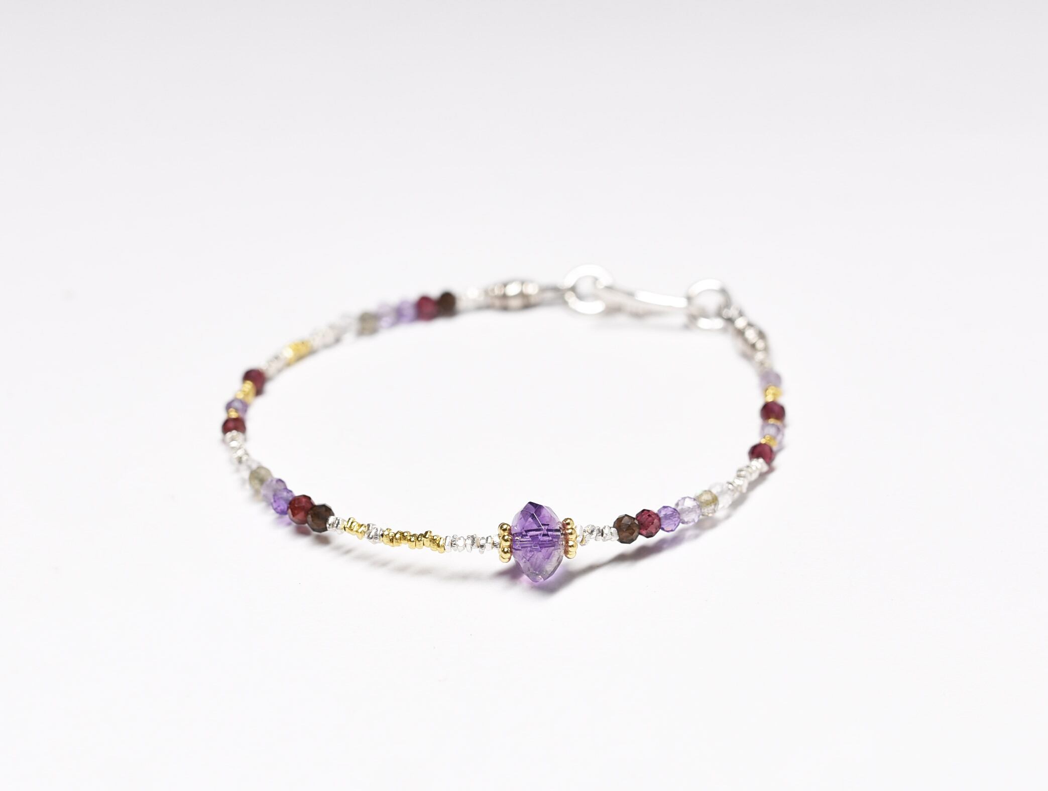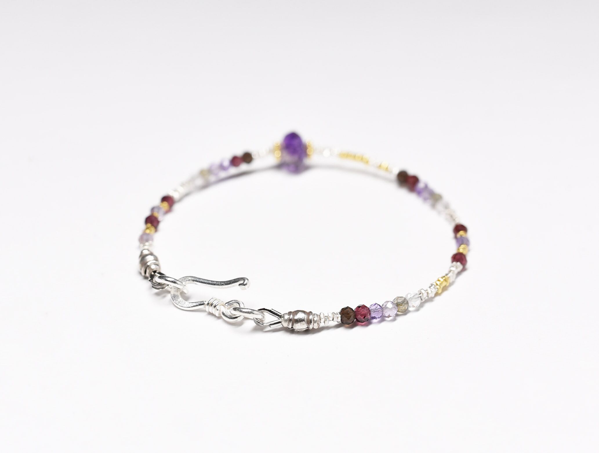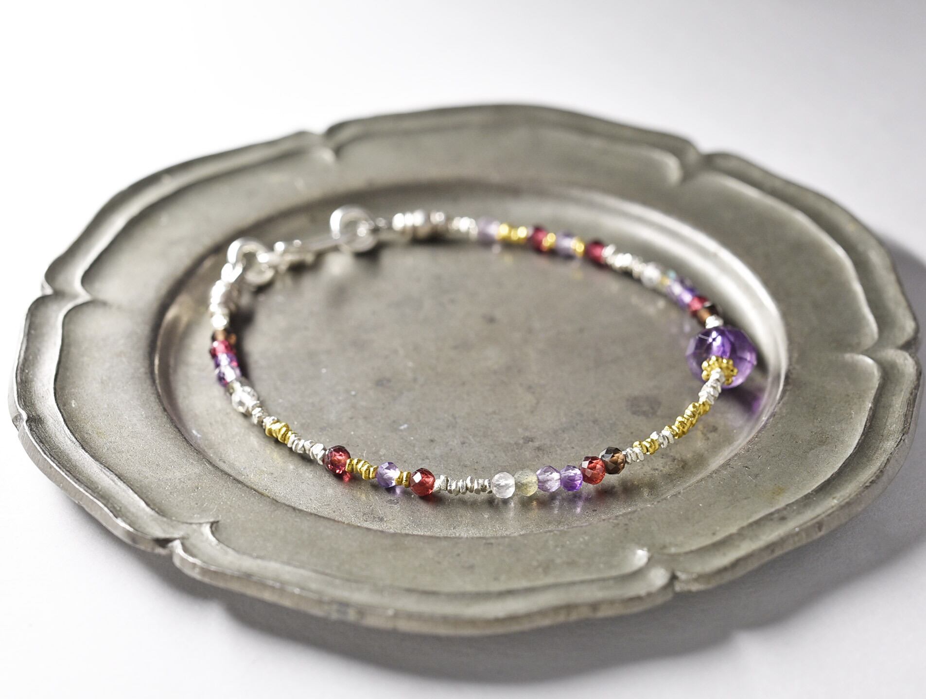 煌めくカレンシルバーと、アメジスト、小さなストーンビーズを繋いだブレスです。