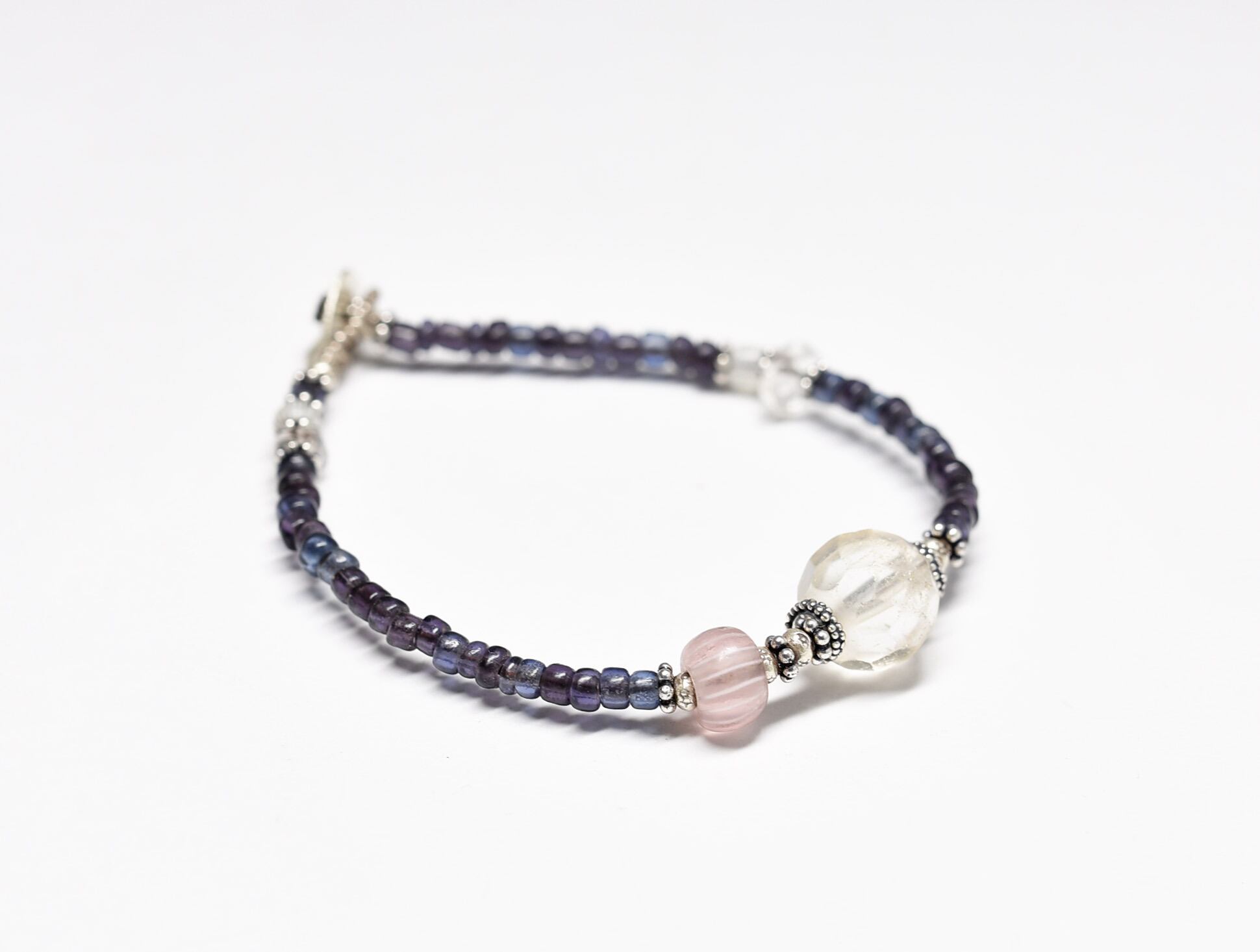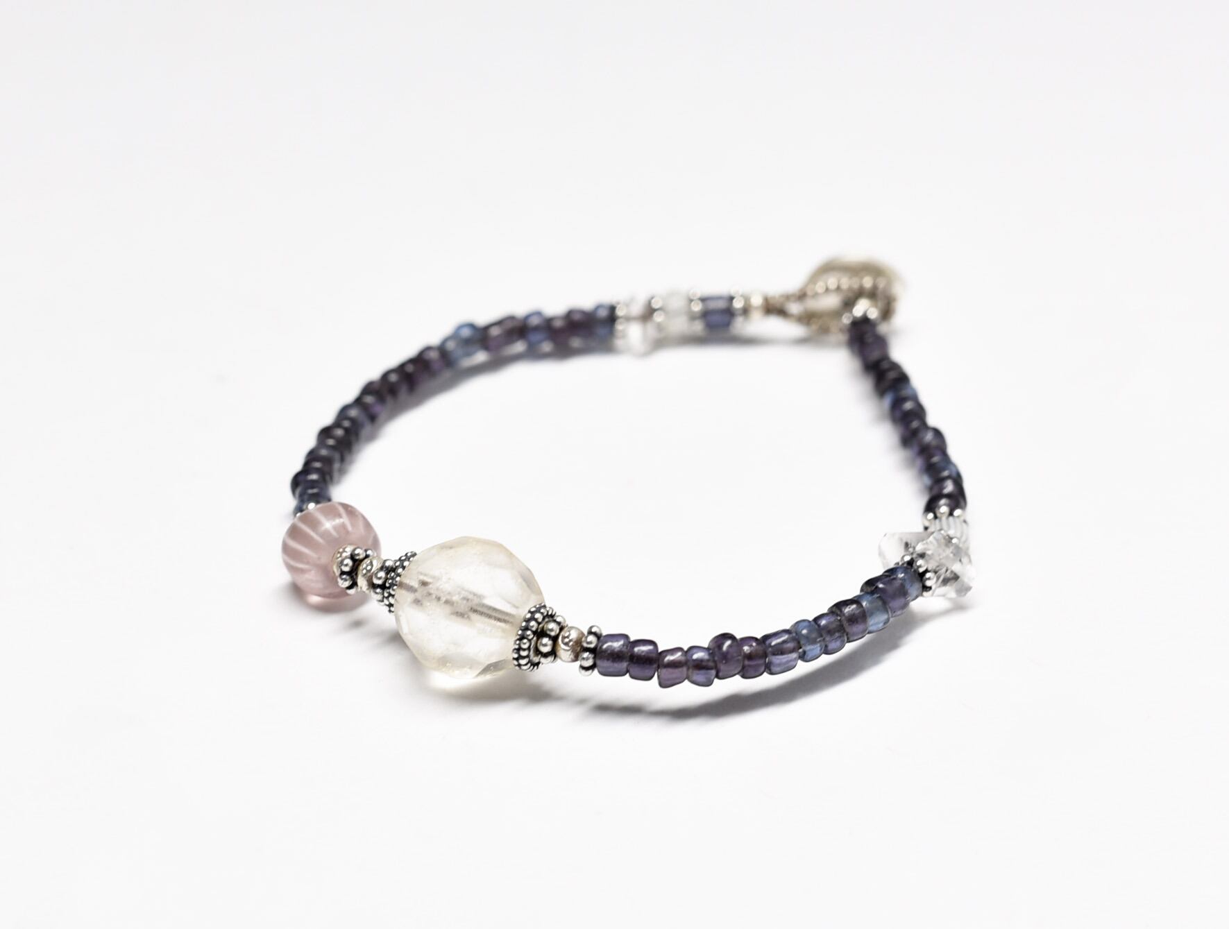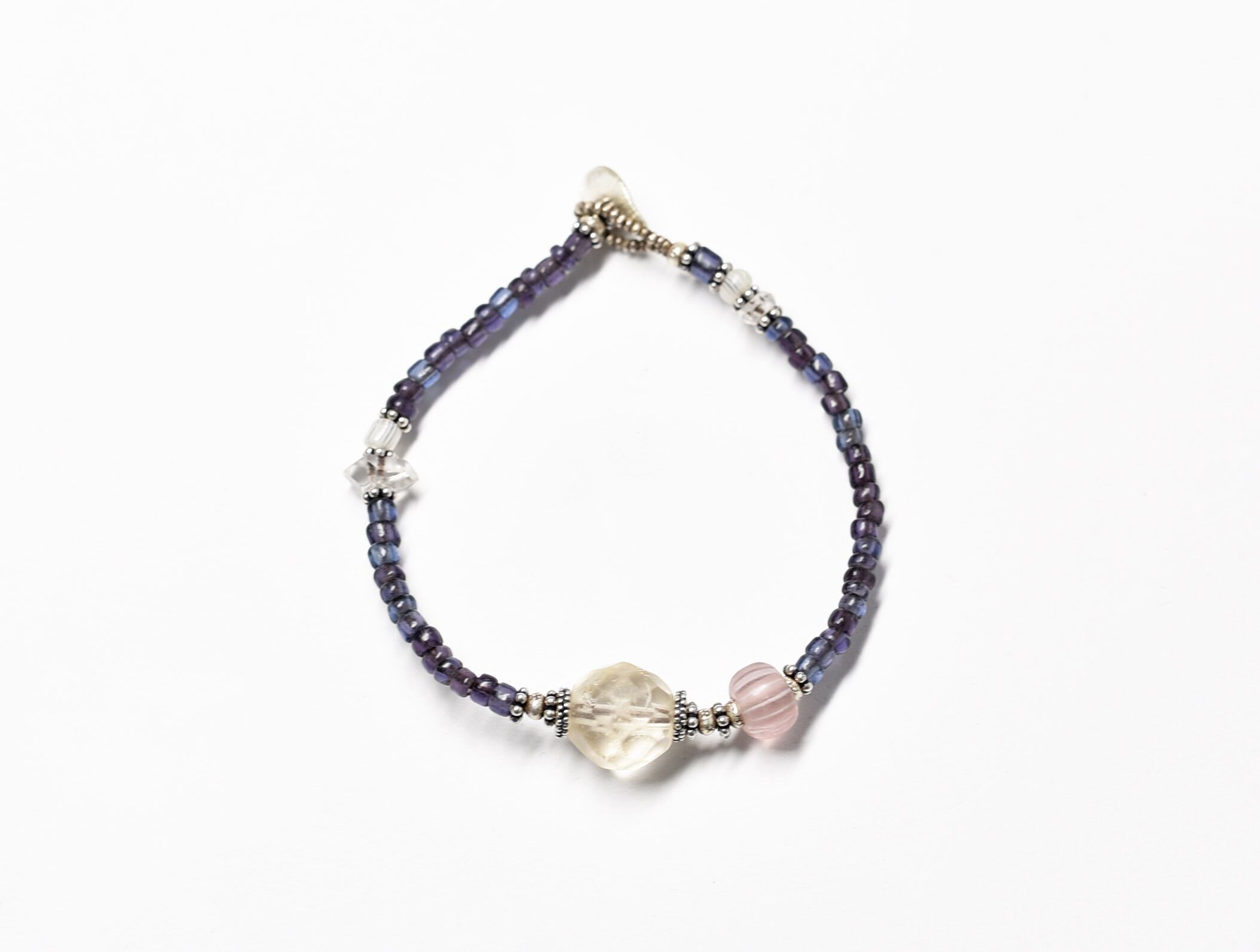 アンティークボヘミアビーズとグーズベリー、パープルミックスアンティークビーズのブレス