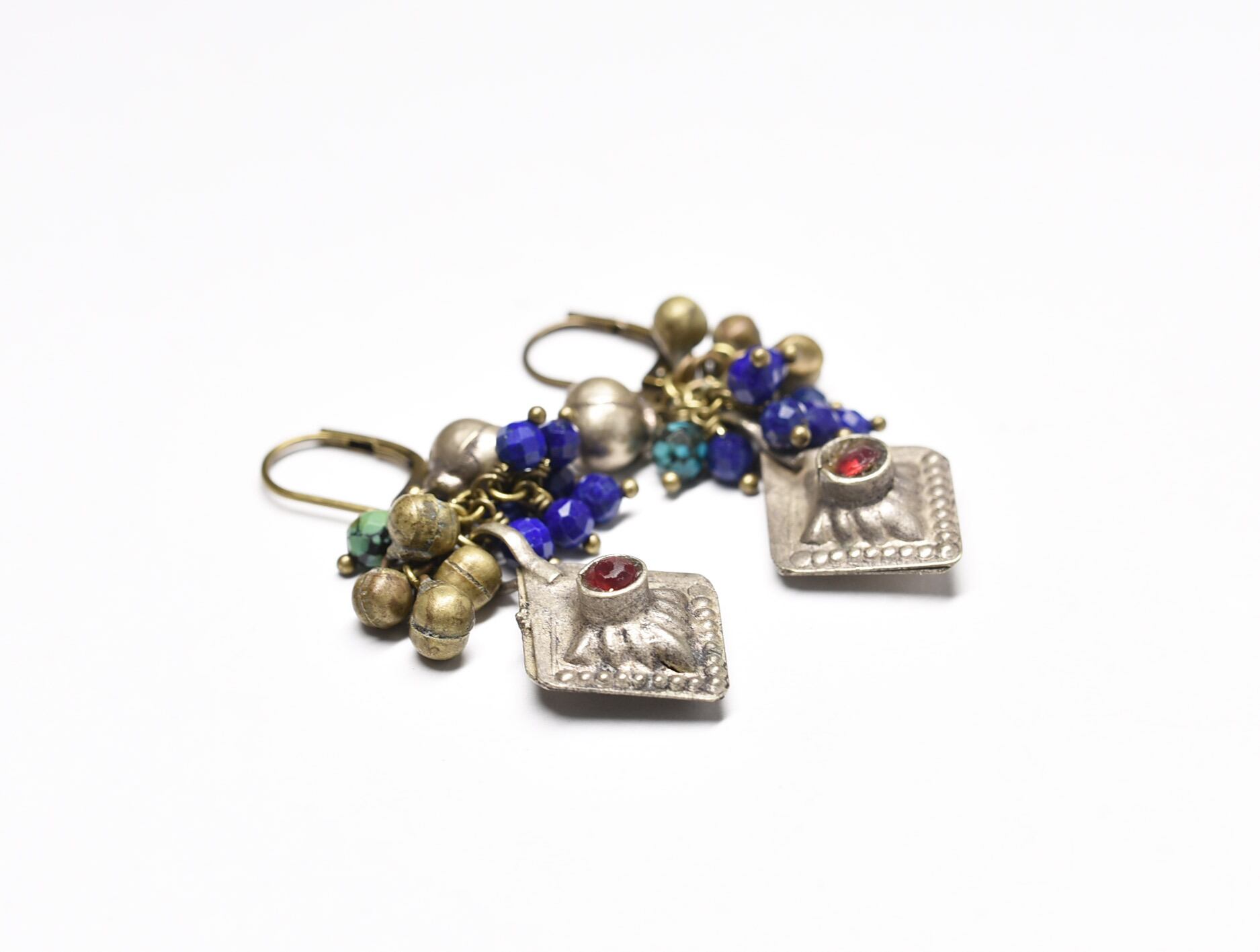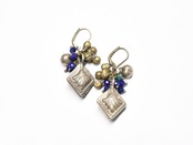 クチ族メタルパーツとたわわなラピス、ターコイズ民族のピアス