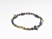 小鳥とモザイク模様ローマングラスとベニン族ツブツブブラス、ブルービーズを繋いだブレスです。