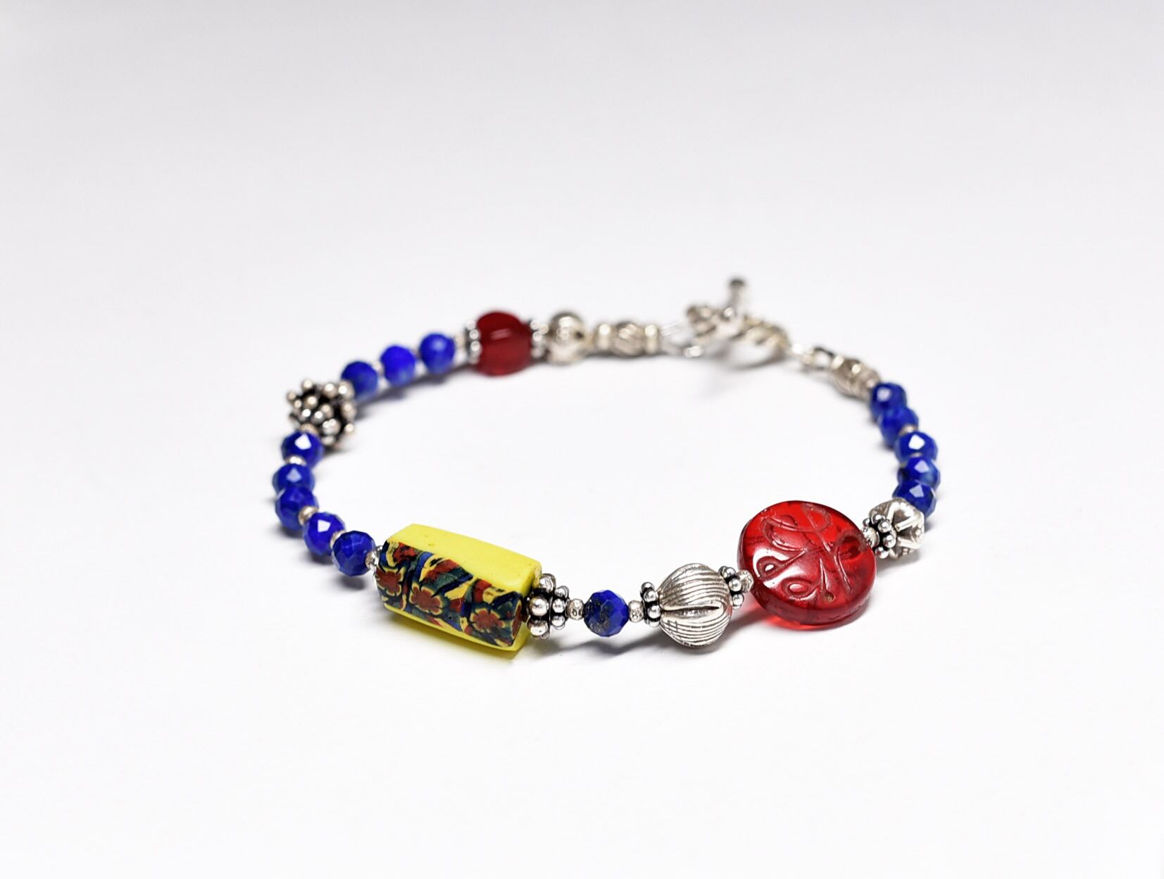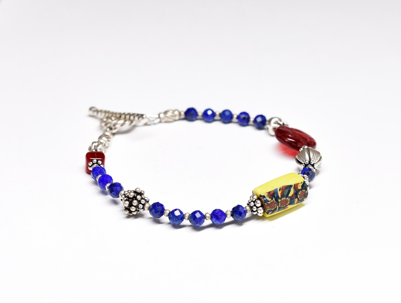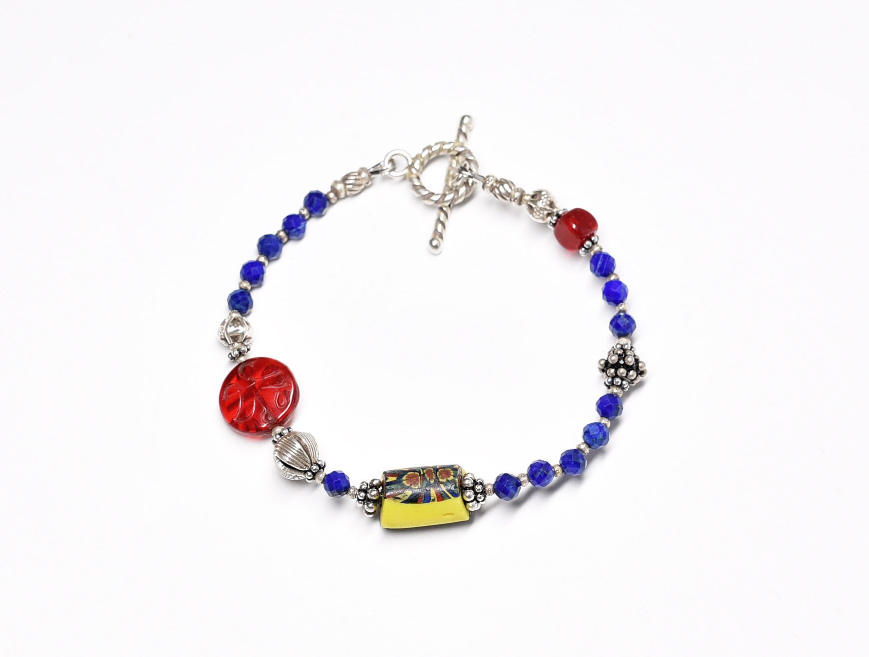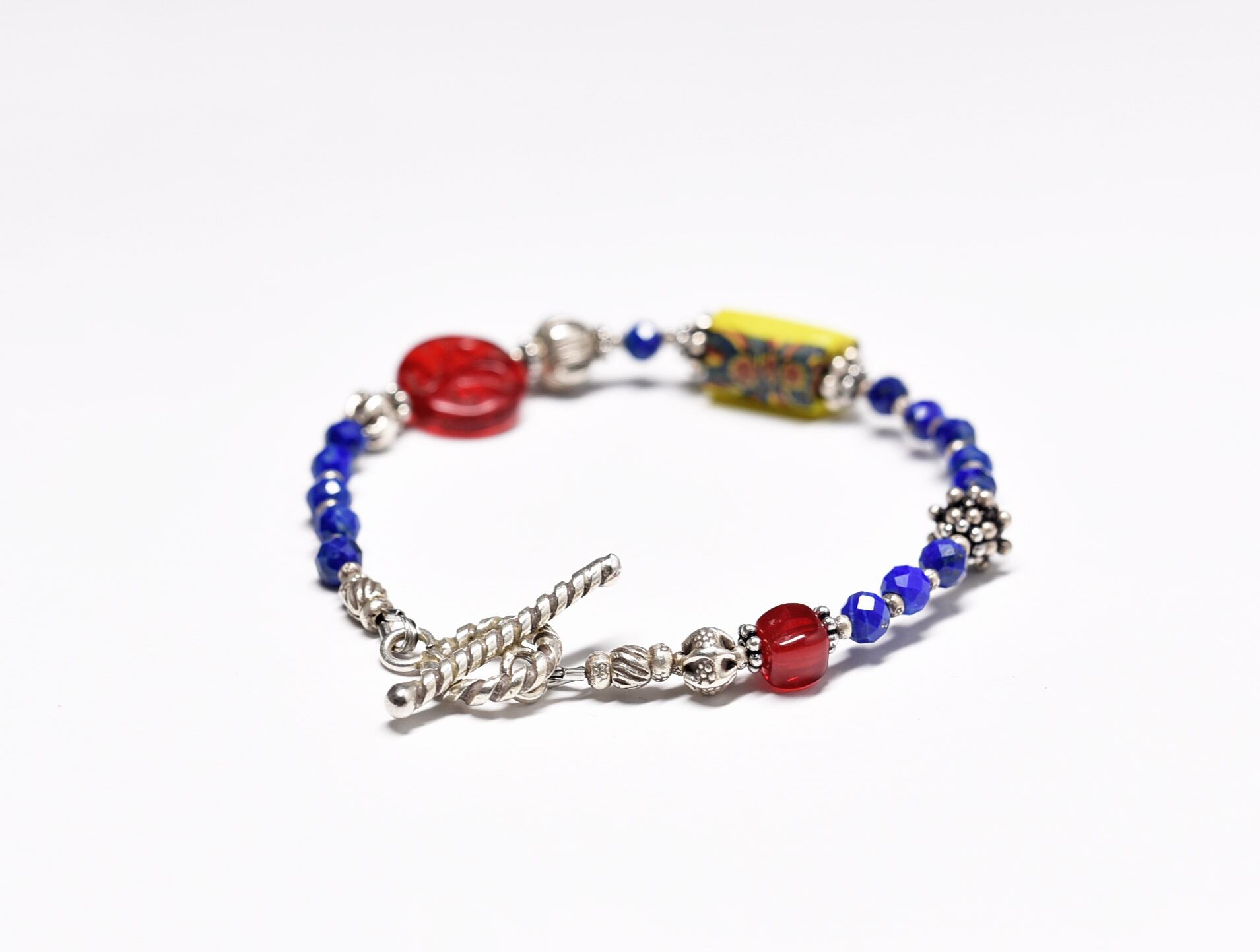 ヴェネチアアンティークミルフィオリビーズと聖者のビーズ、ラピス、カレンシルバーのブレス
