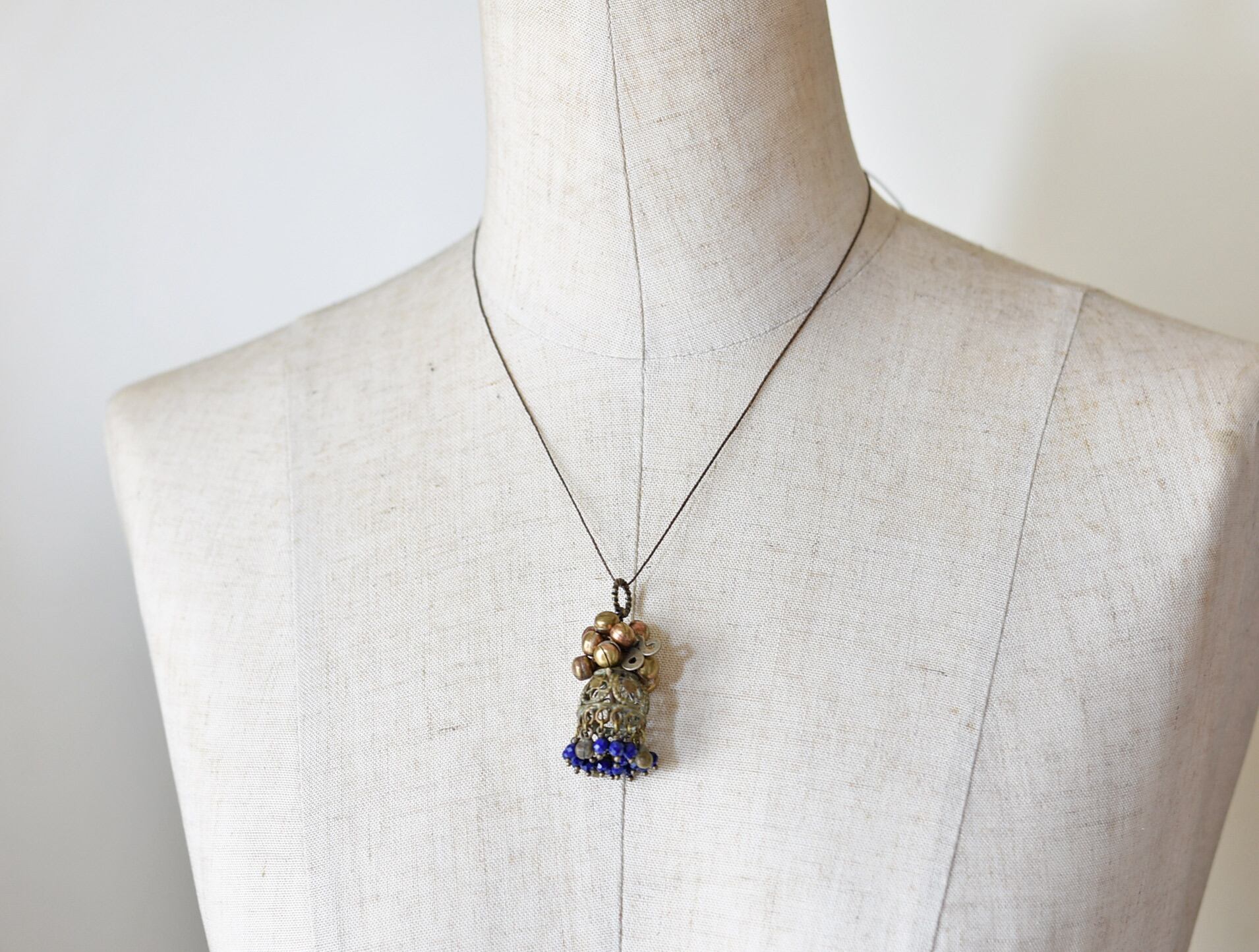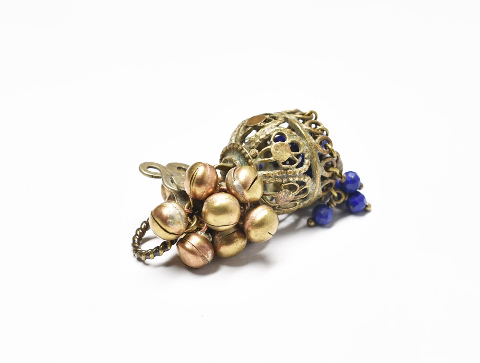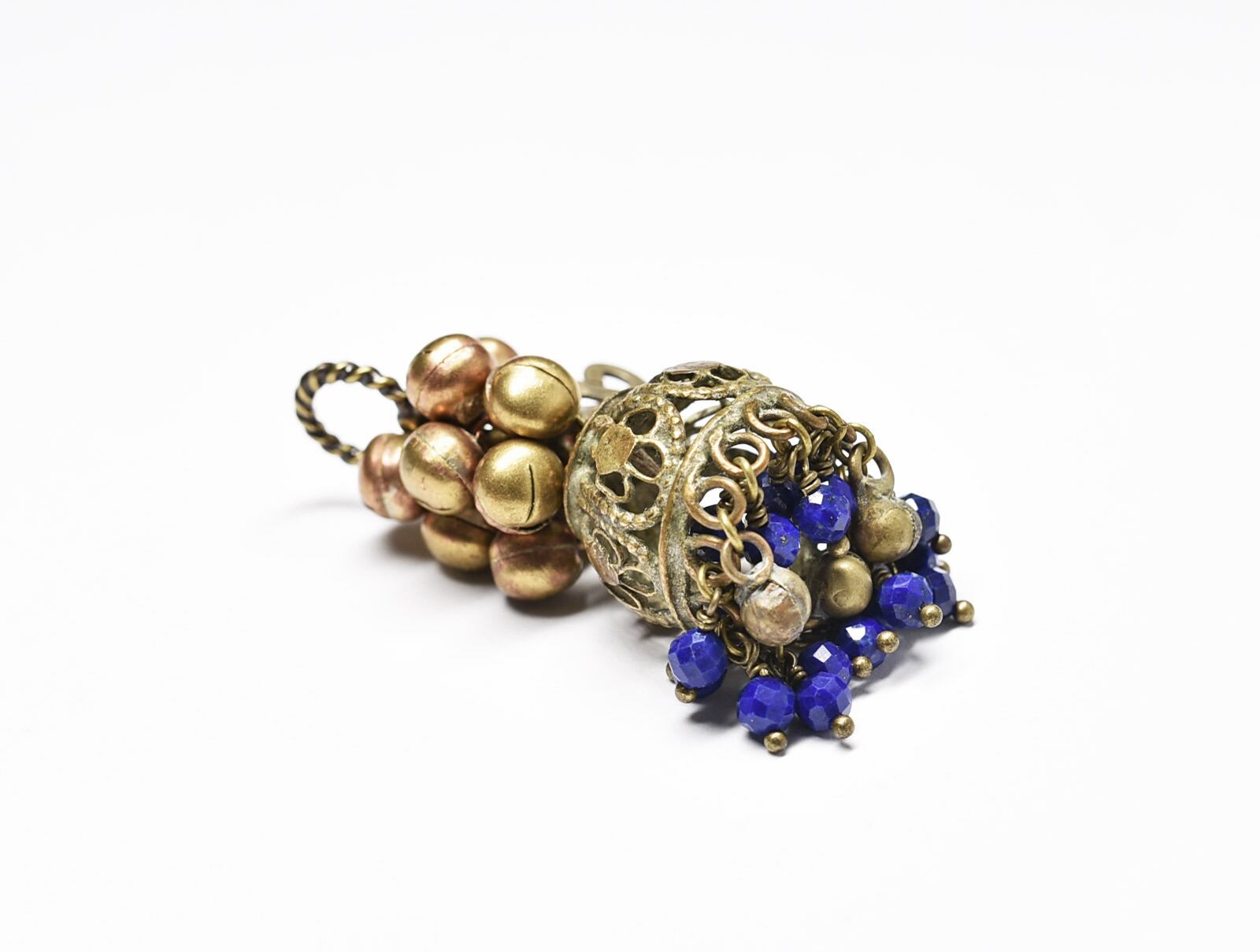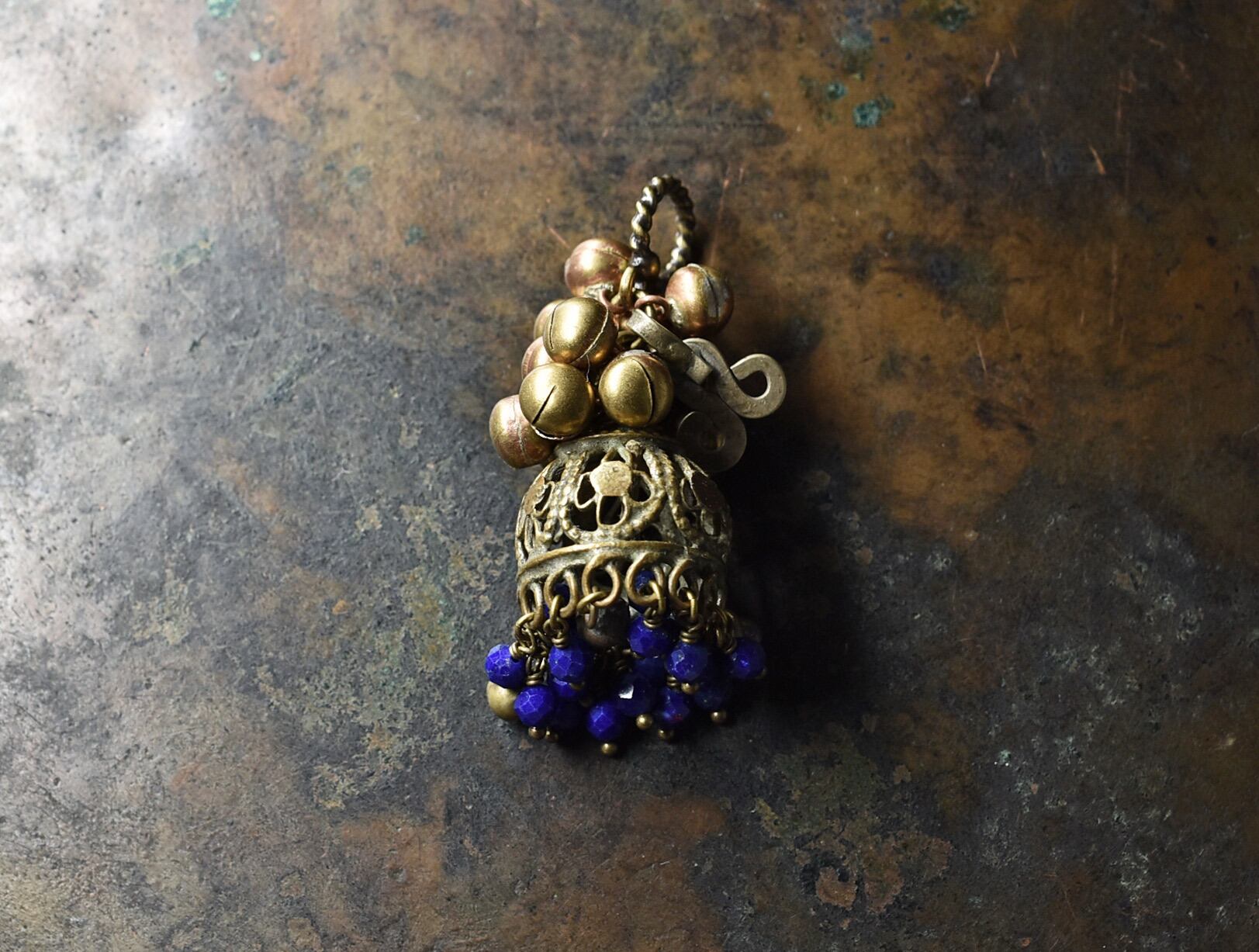 クチ族メタルとラピスラズリ、たわわな鈴のペンダントトップ