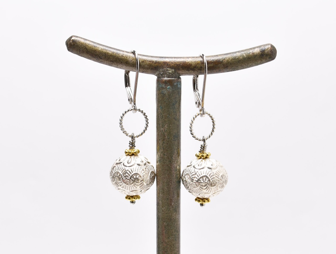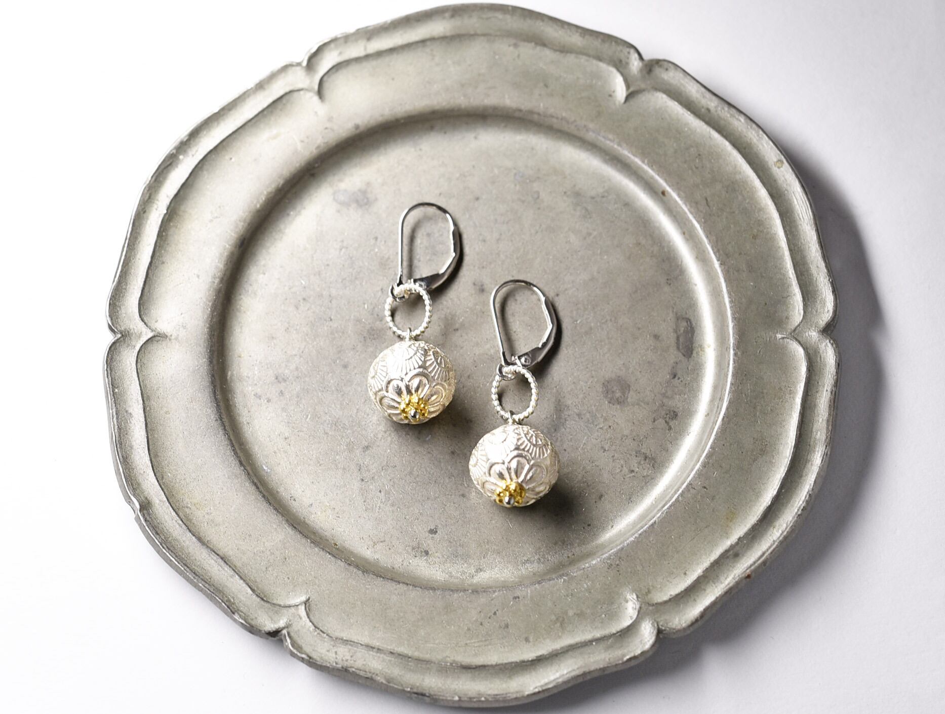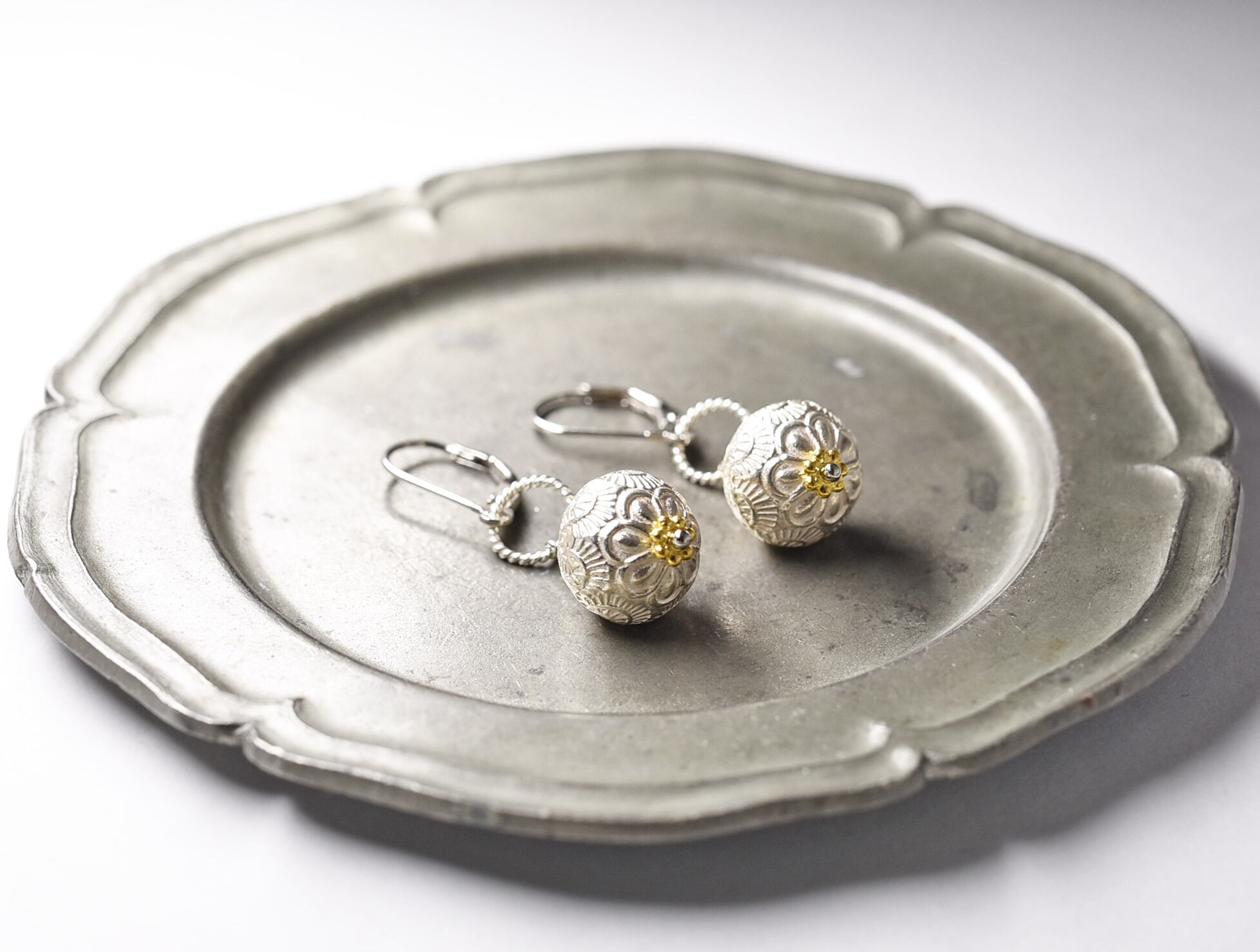 まん丸なカレンシルバーに少しジャポニズムを感じる刻印が一面に施されています。