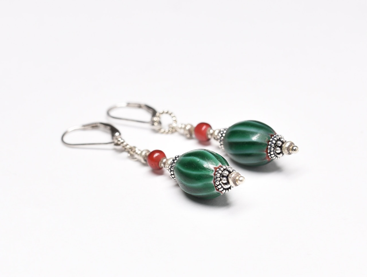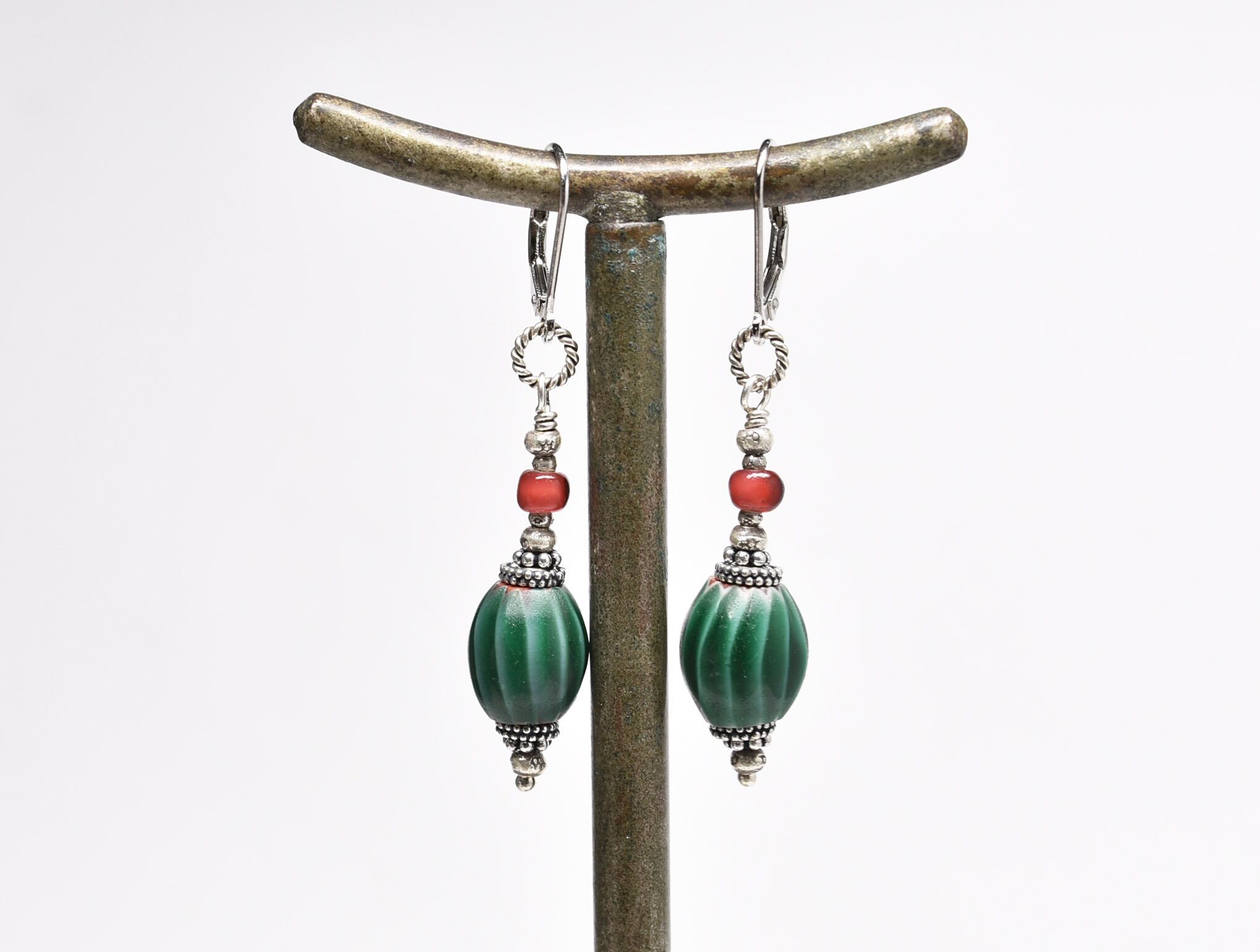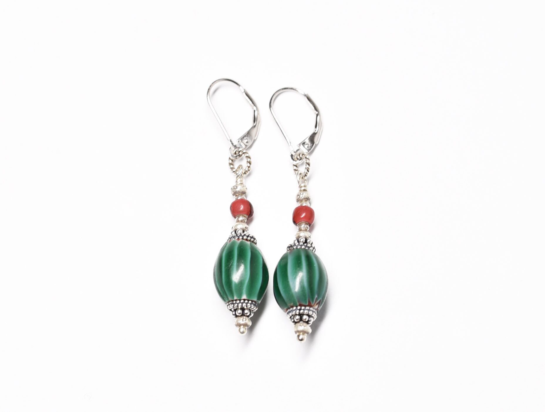 緑色のビーズは「ウォーターメロン」ト呼ばれるベネチアのアンティークビーズです。(20世紀初頭)