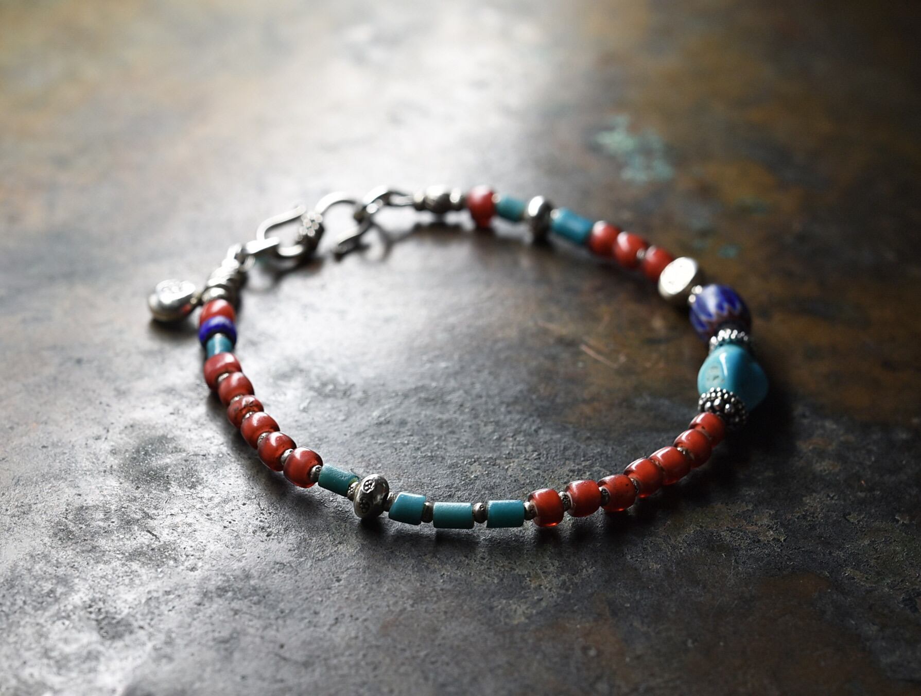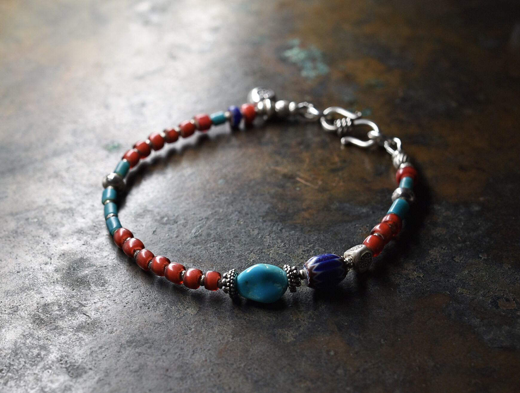 ベネチアビーズの発色の良さの中に、経年の味わいが楽しめるブレスです。