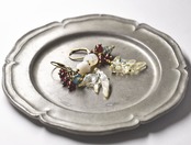 すずらん型の白蝶貝を合わせています。ぷっくりとした形に彫刻が施されています。