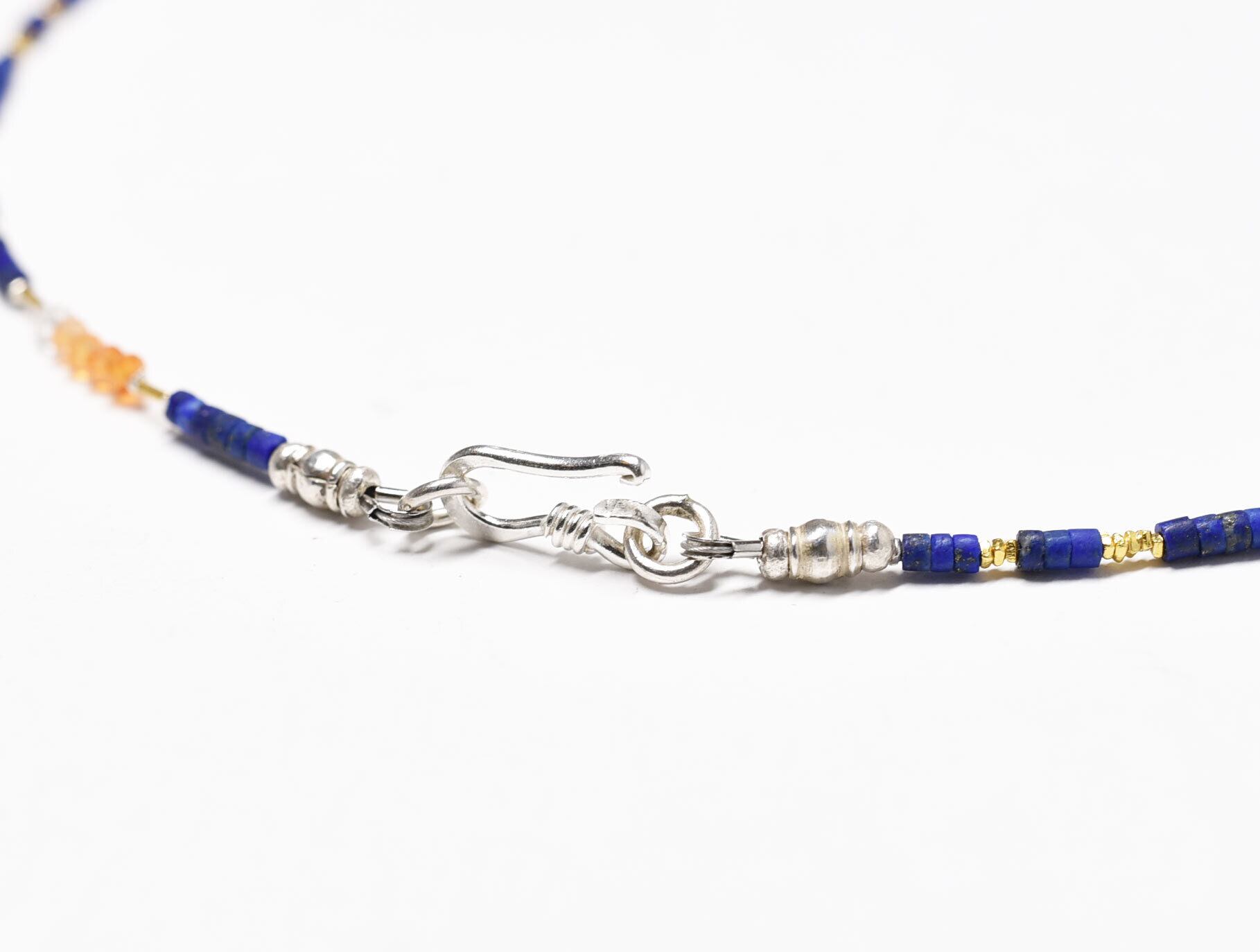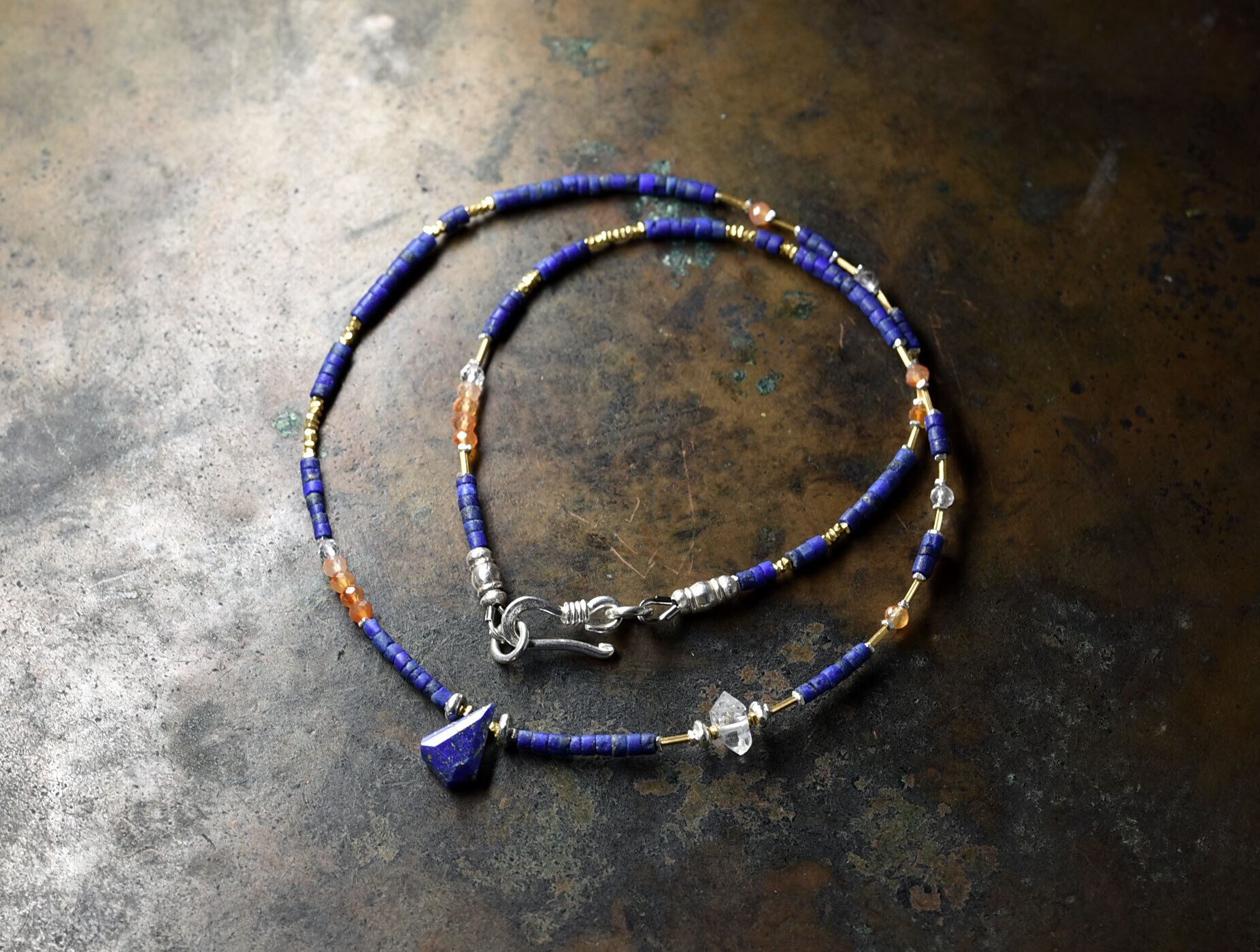 ラピスとカーネリアン、ハーキマーダイヤモンド、カレンシルバーの華奢なネックレス