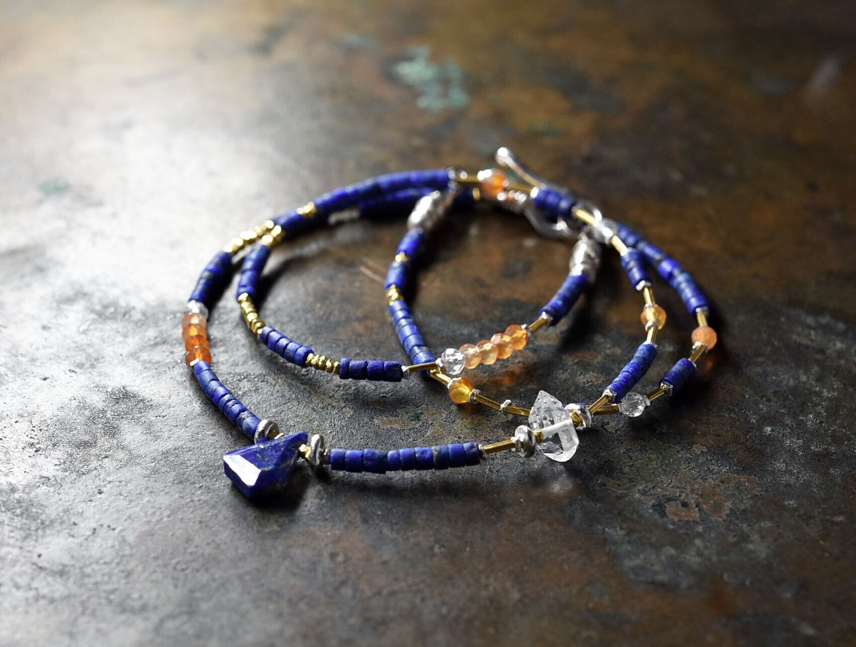 素材:ラピスラズリ、ハーキマーダイヤモンド、カーネリアン、カレンシルバー、ワイヤー