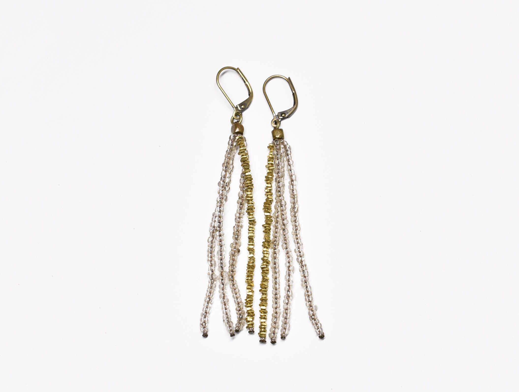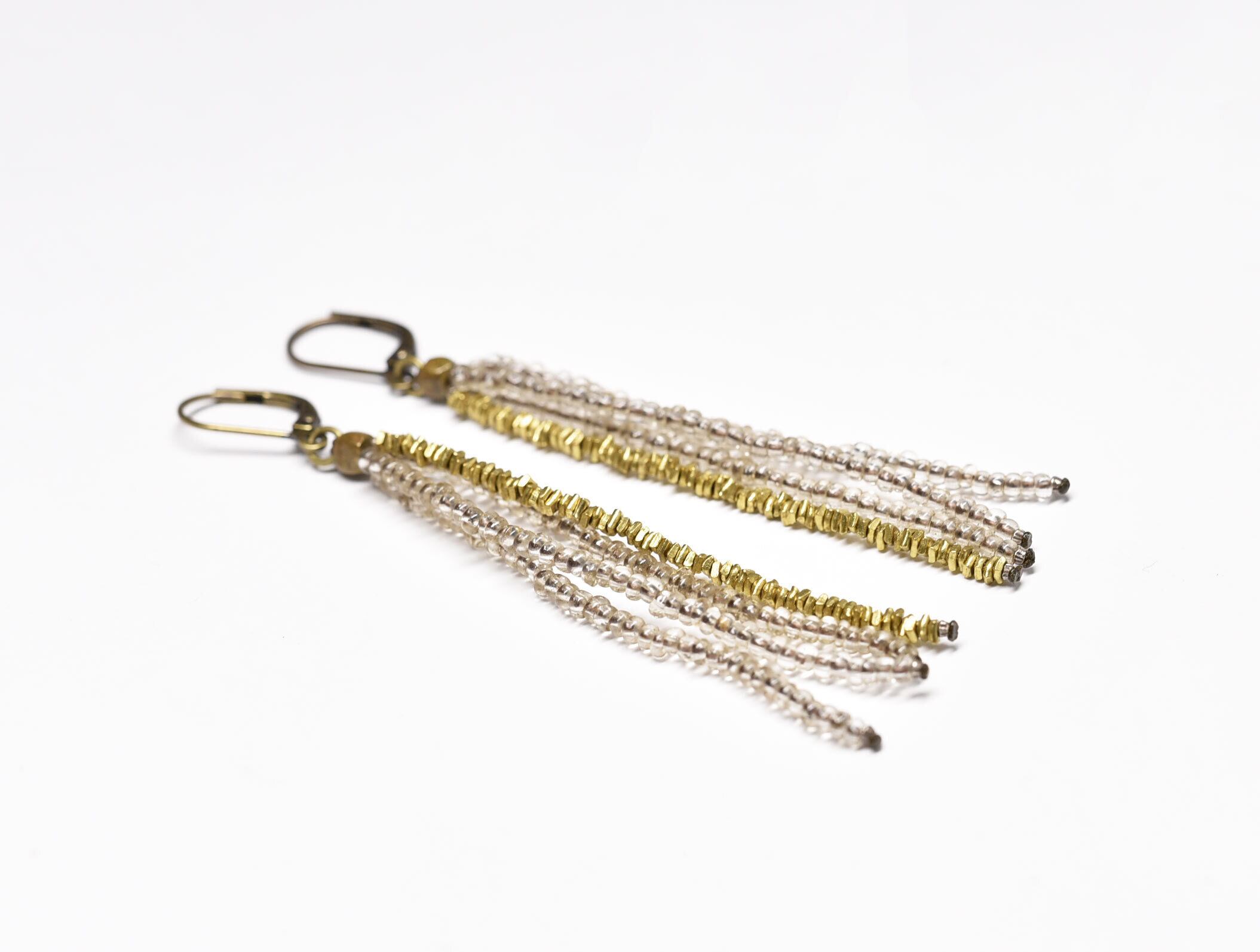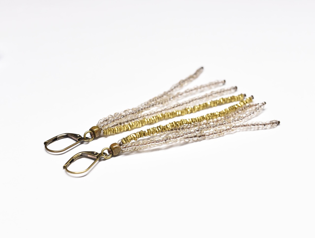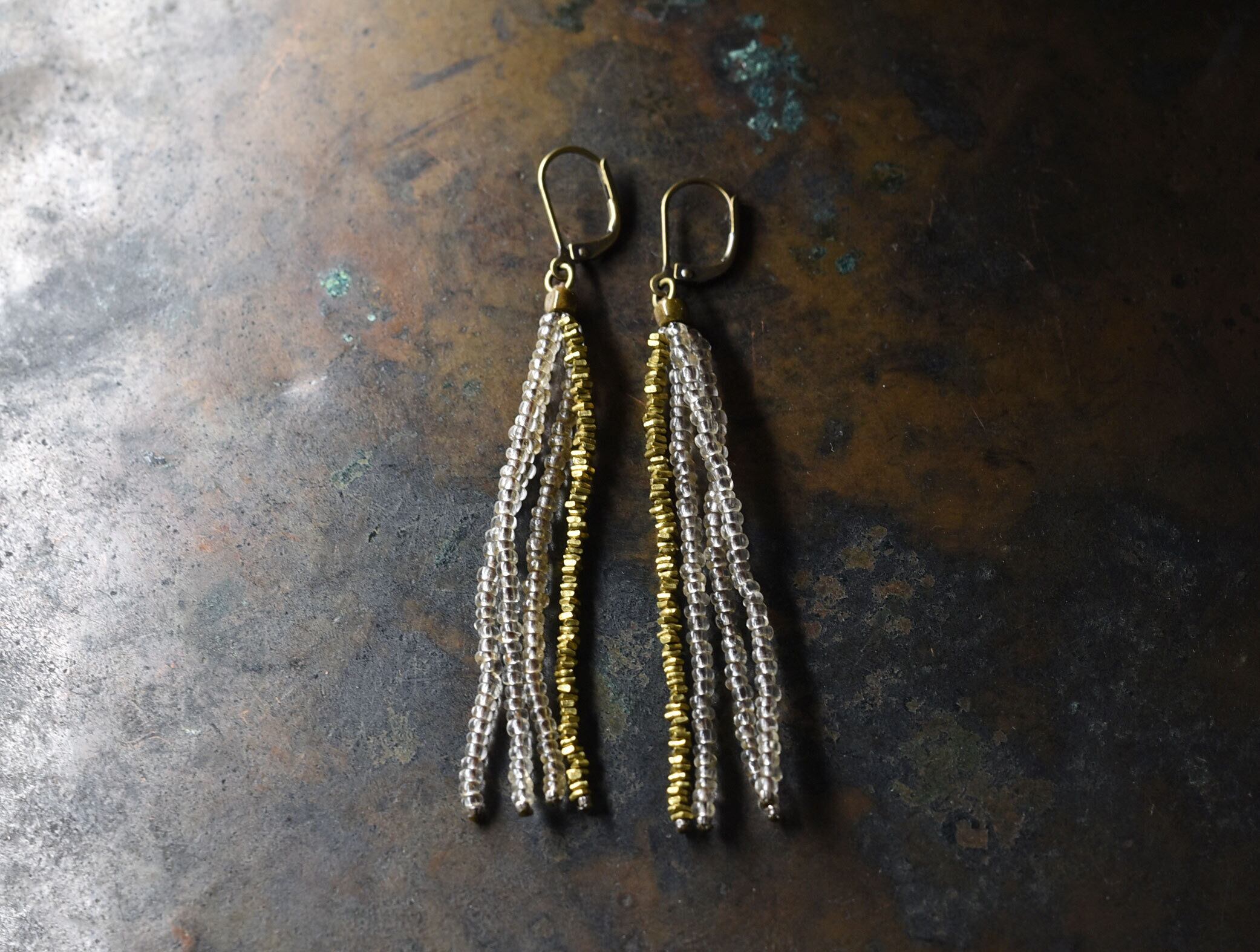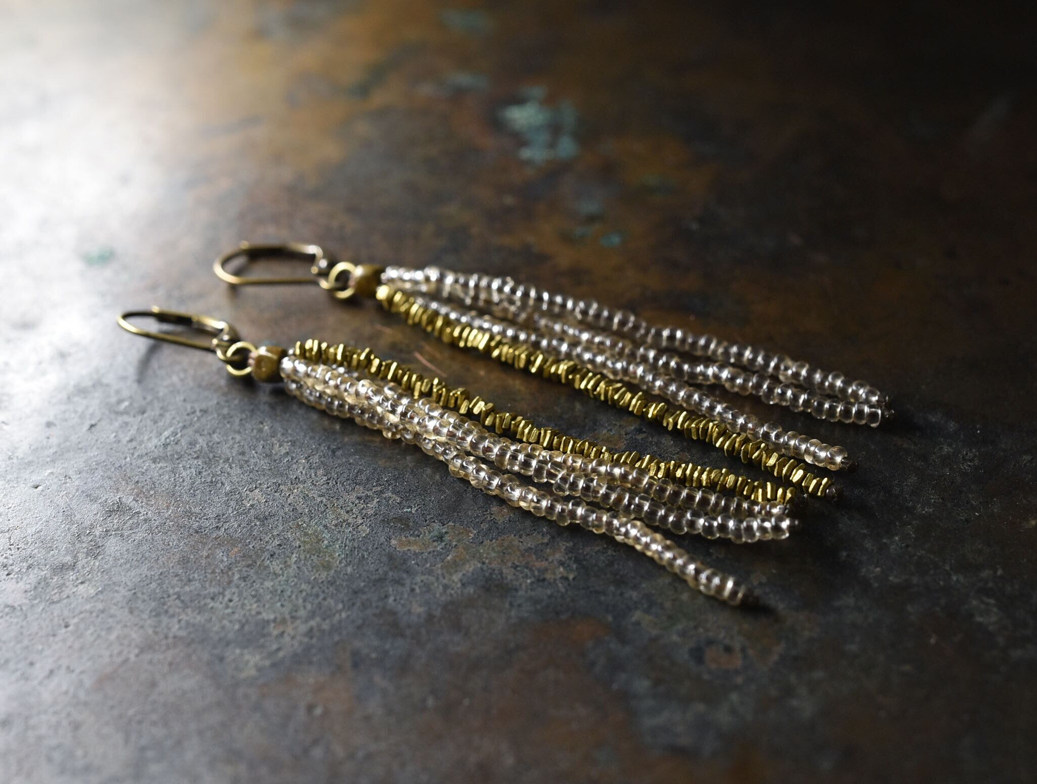 ブラスビーズとクリアシードビーズを繋いだ4連ピアスです。