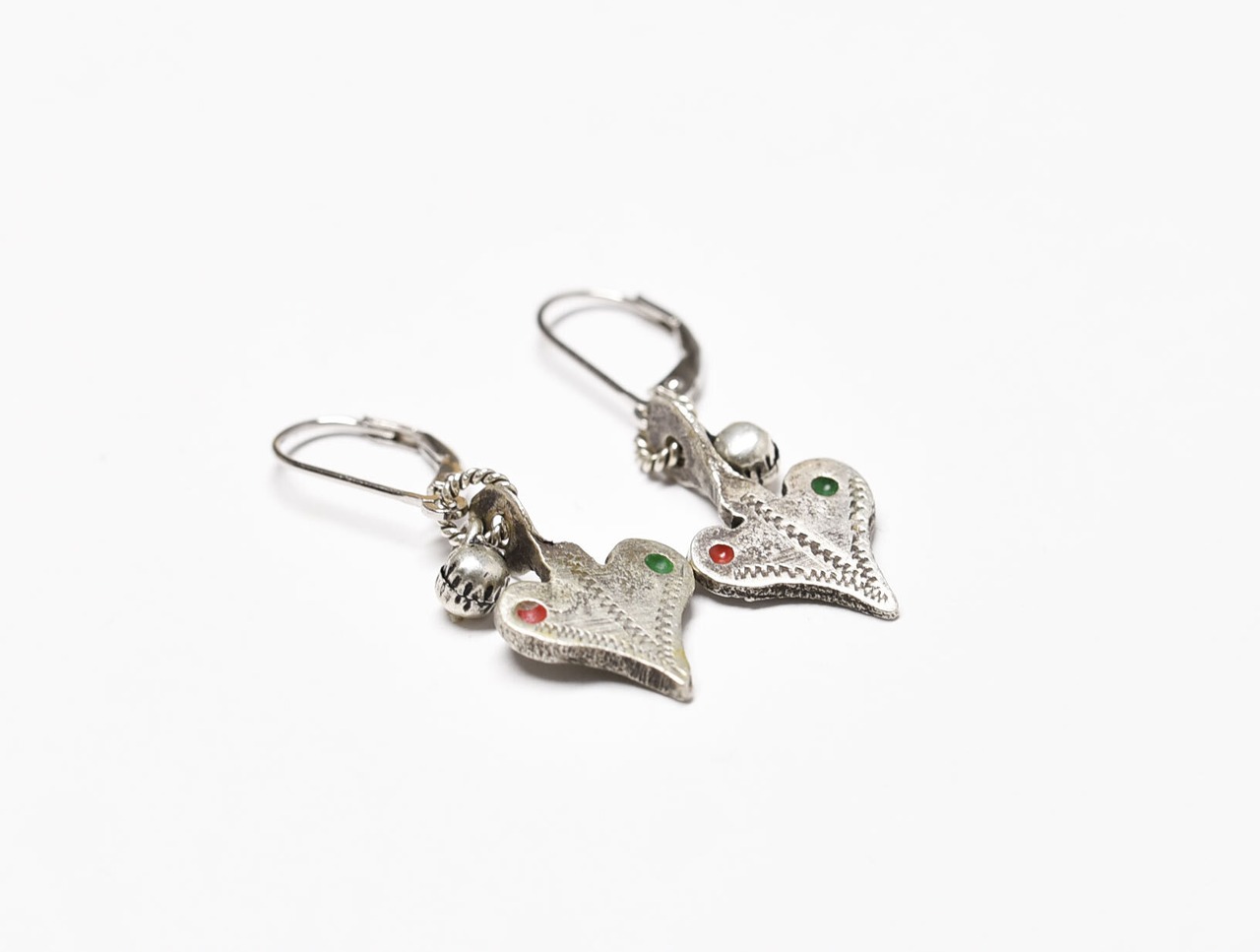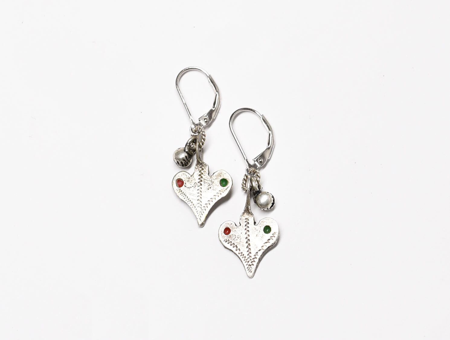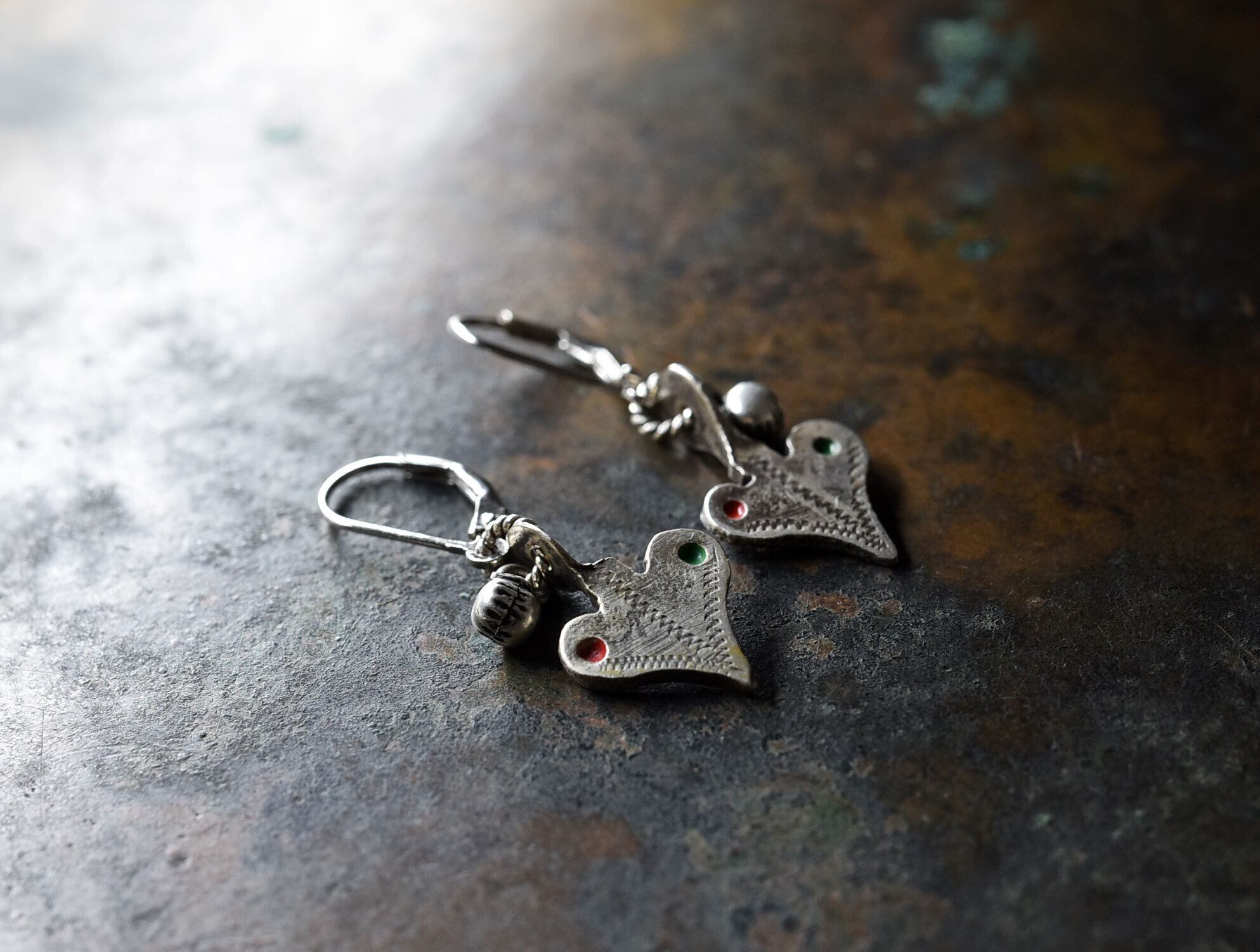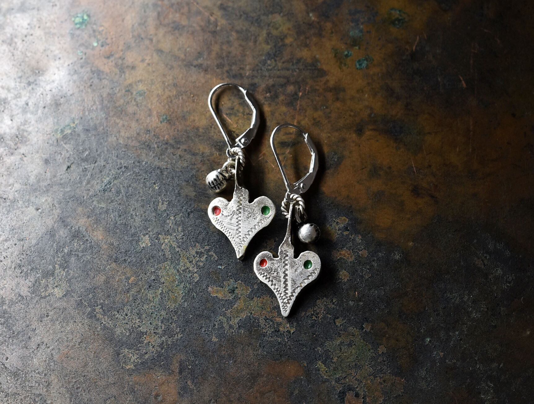 ハート型のパーツはベルベル族のヴィンテージシルバーです。恐らくネックレスなどのパーツとして使われていたもので、摩耗感があります。