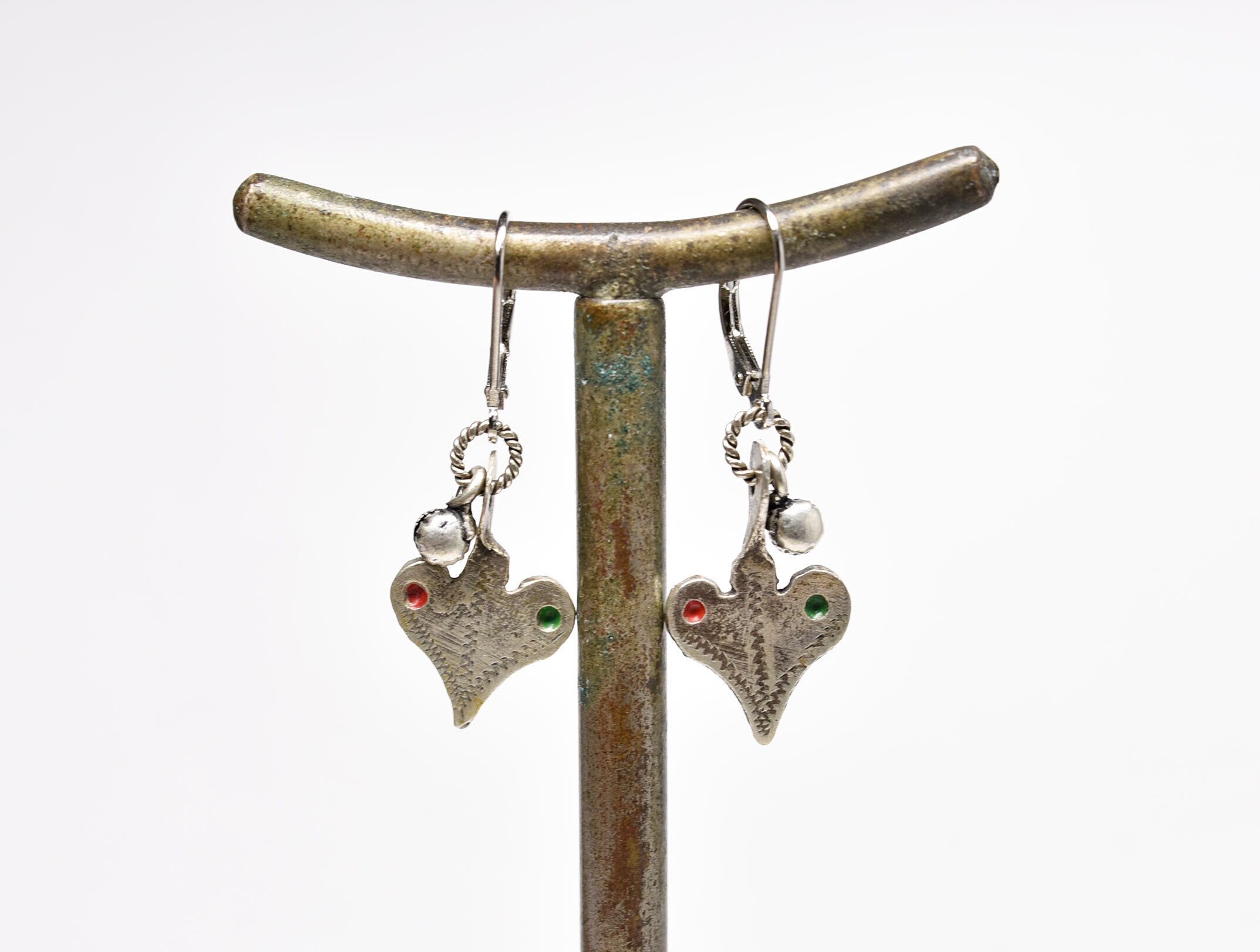 ベルベル族ヴィンテージシルバーと小さな鈴のピアス(ハート)