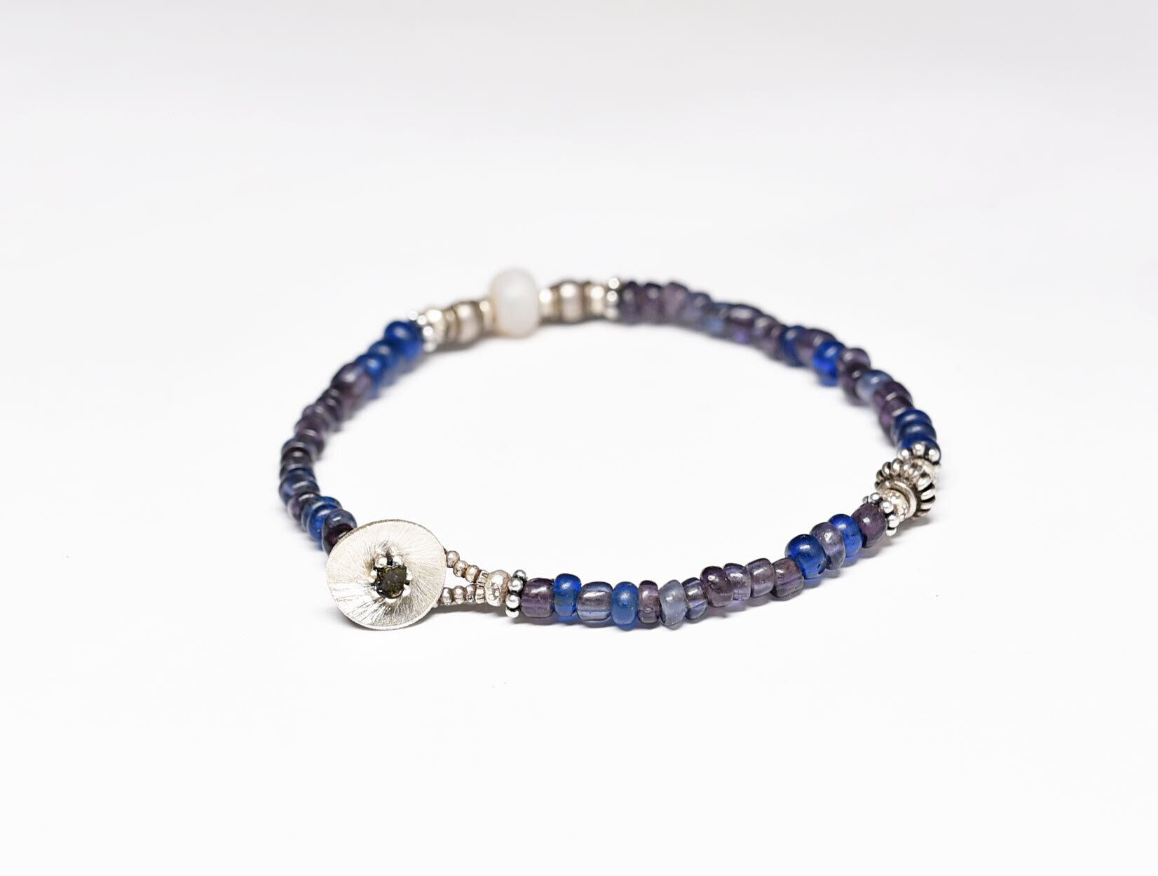 古代瑪瑙とoldチンシルバー、パープルミックス&ブルーアンティークビーズのブレス