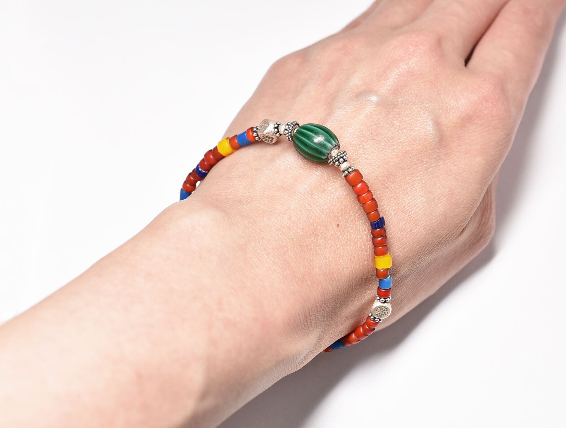 シルバーアクセサリーとの相性もばっちりのブレスです。