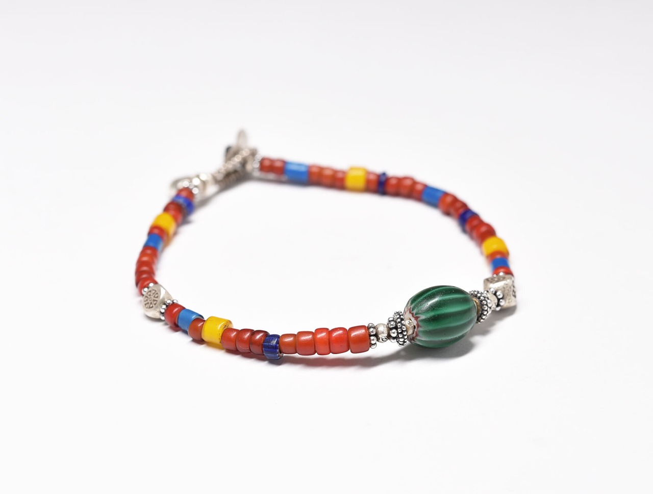 緑色のビーズは「ウォーターメロン」ト呼ばれるベネチアのアンティークビーズです。(20世紀初頭)