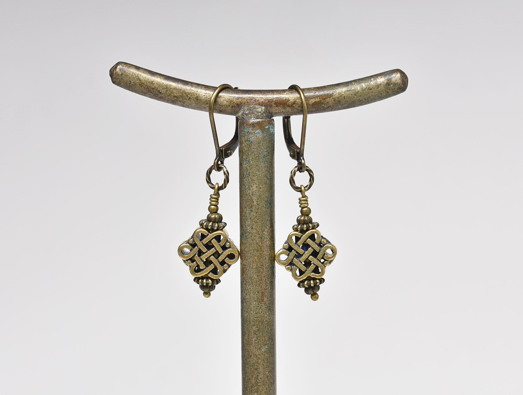 小さめなエンドレスノットが揺れるピアスです。