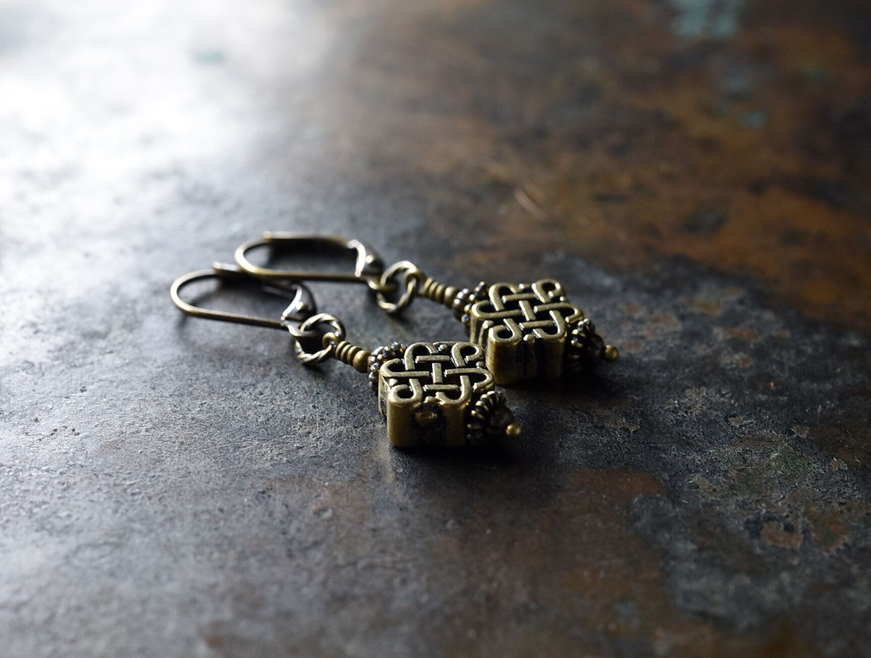 真鍮のエンドレスノットを繋いだピアスです。