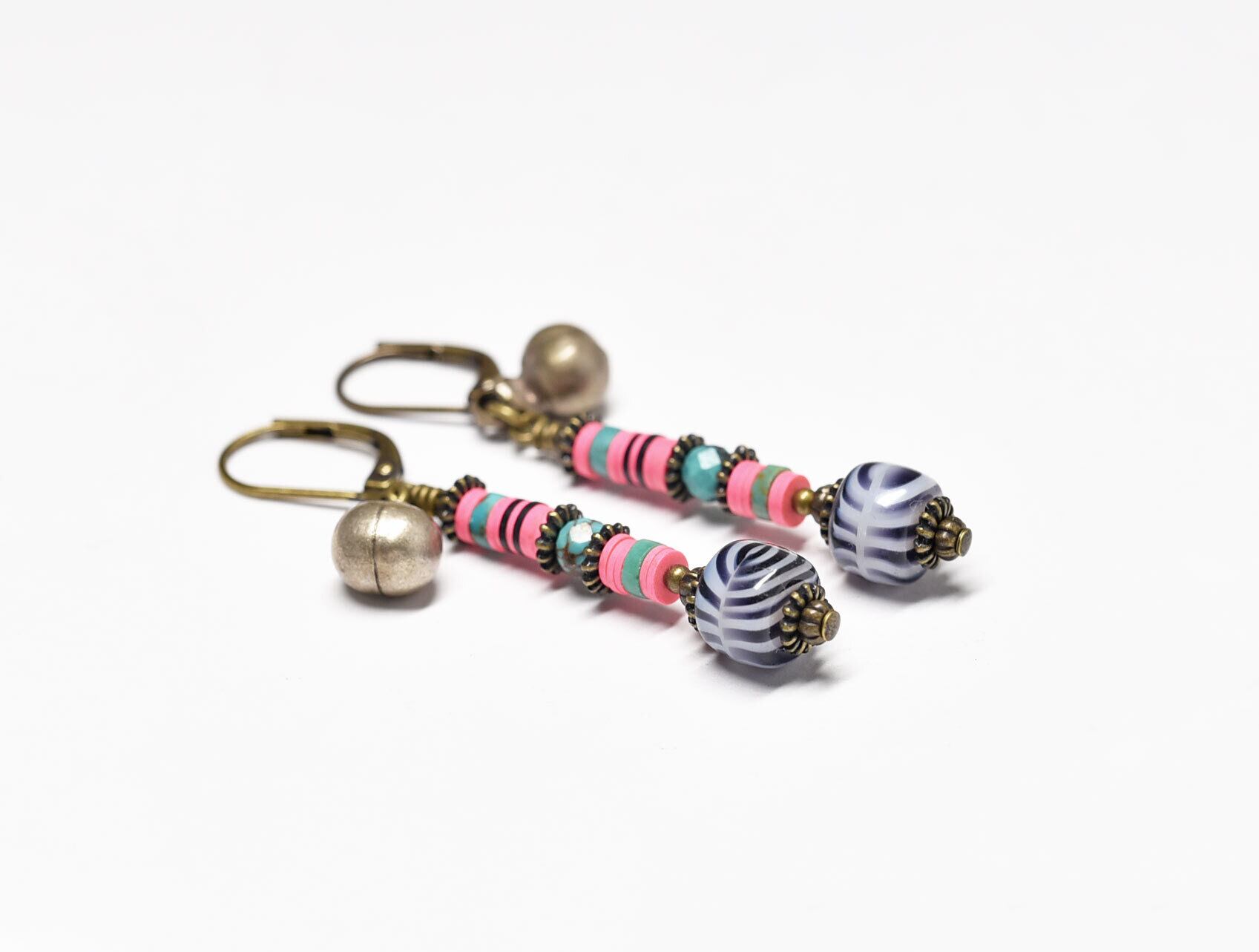 ゼブラ柄のビーズはヴィンテージのチェコ産のガラスビーズです。