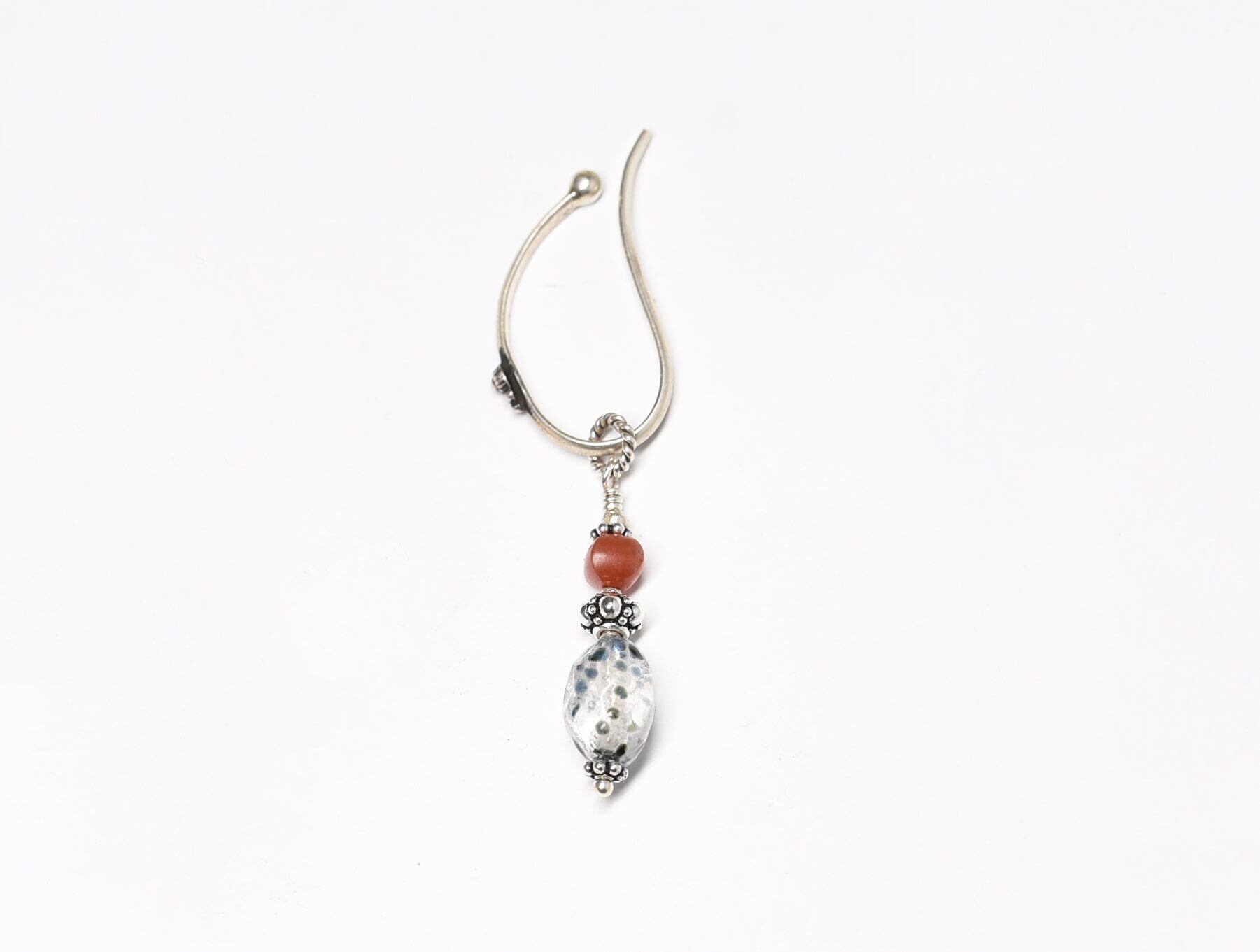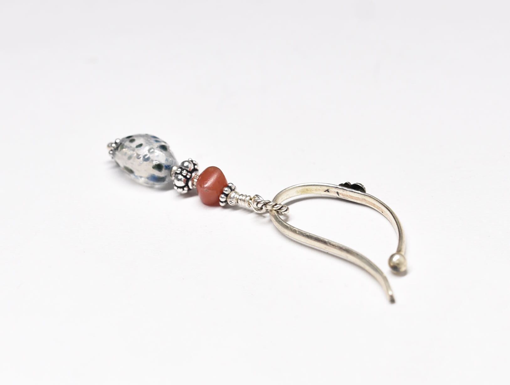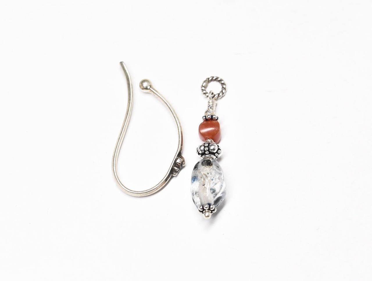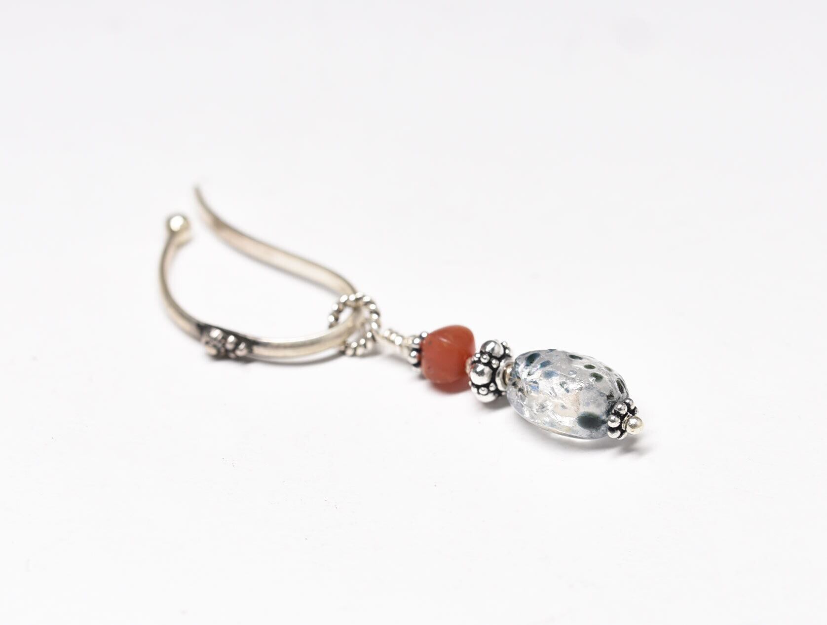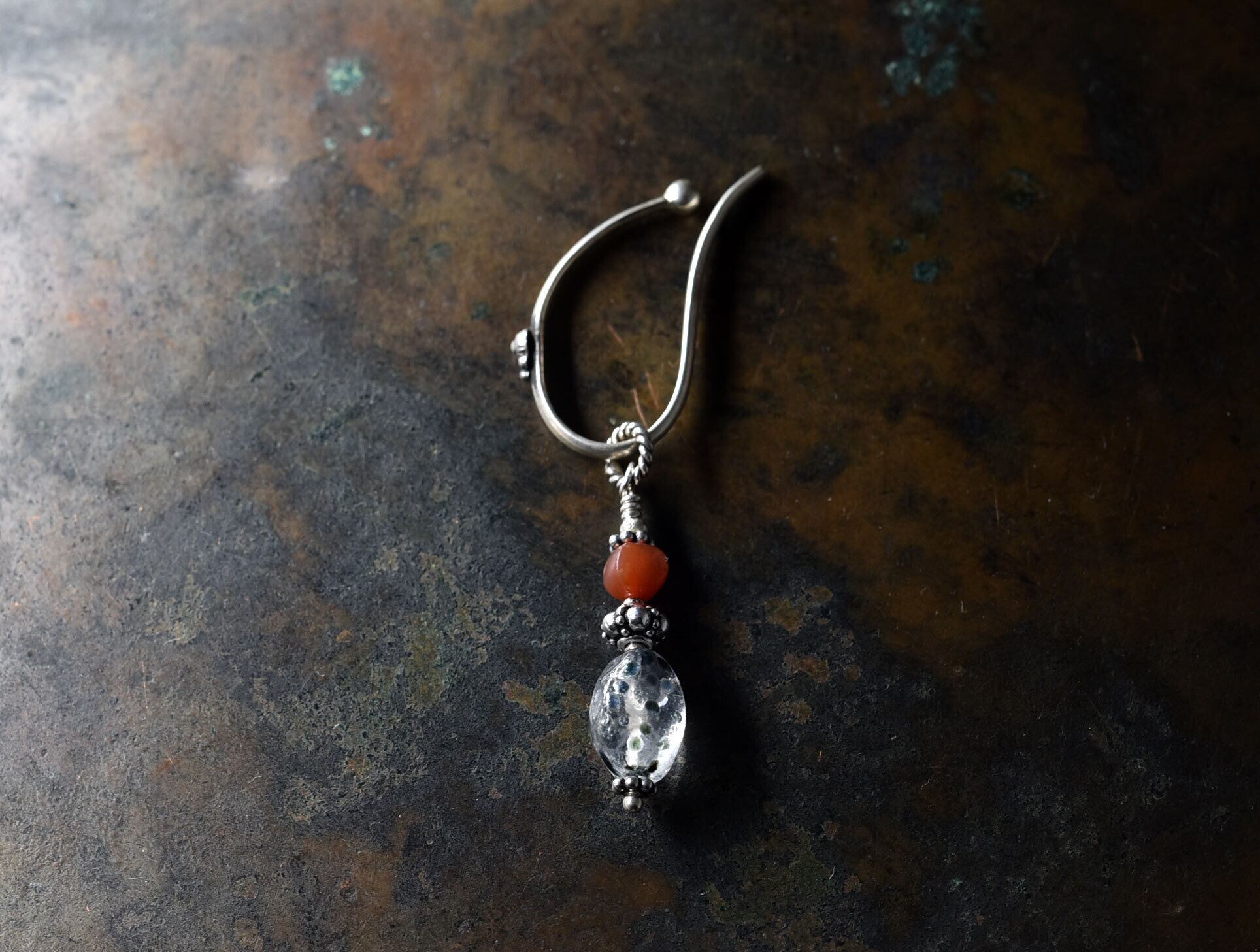 古代施釉水晶と古代カーネリアン、様々なシルバーで繋いだイヤーカフです。
