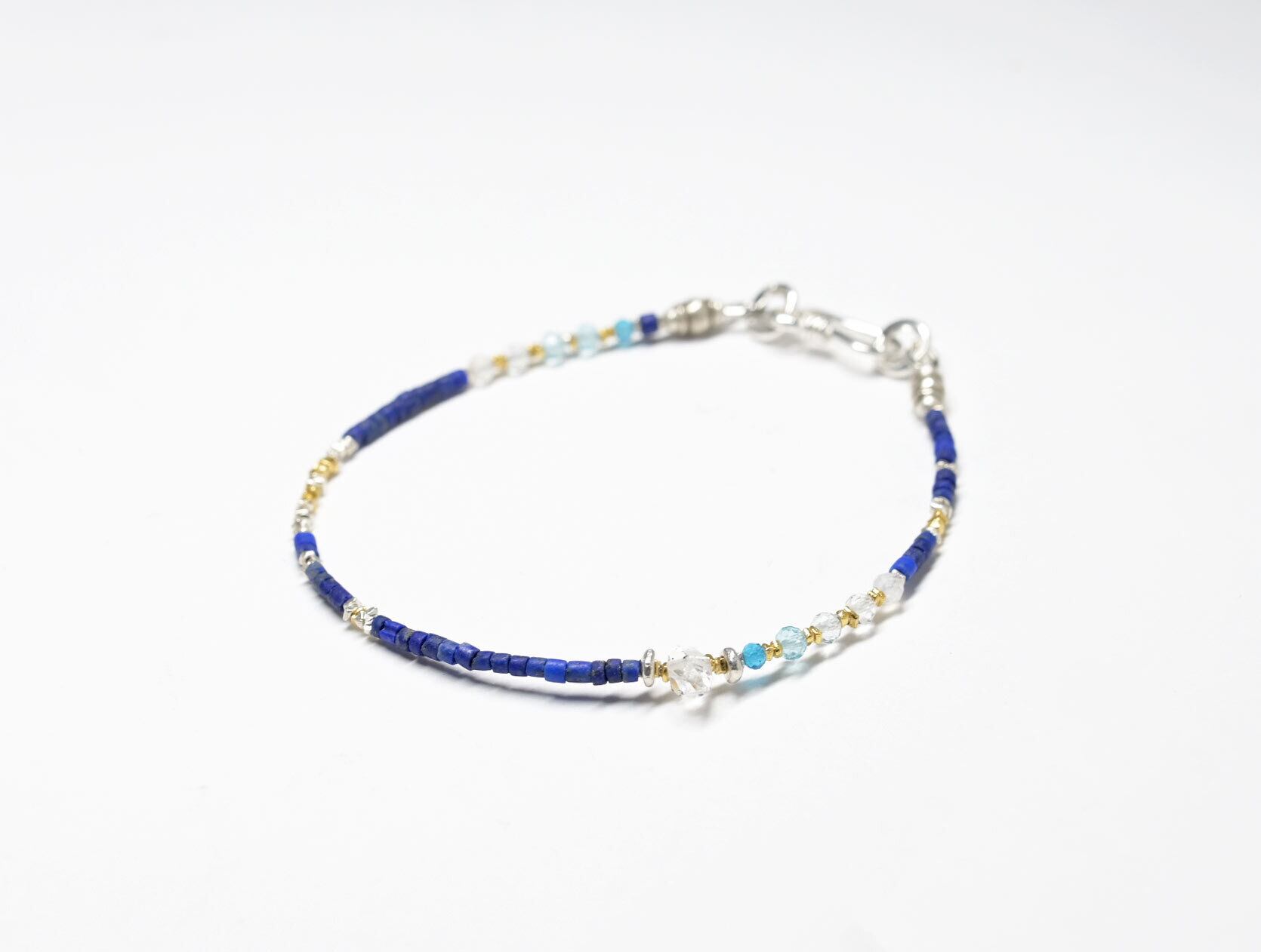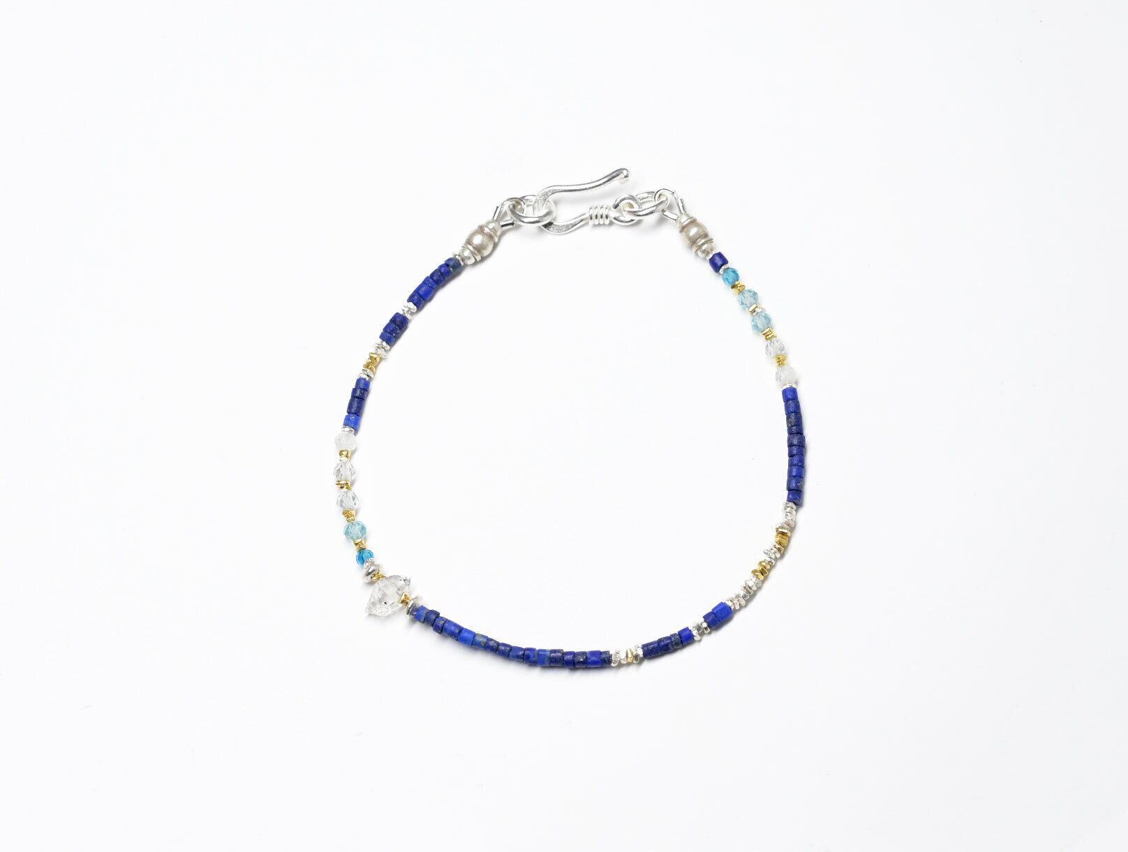 ラピスと小さなストーンビーズ、ハーキマーダイヤモンド、カレンシルバーの華奢なブレス(ブルー)