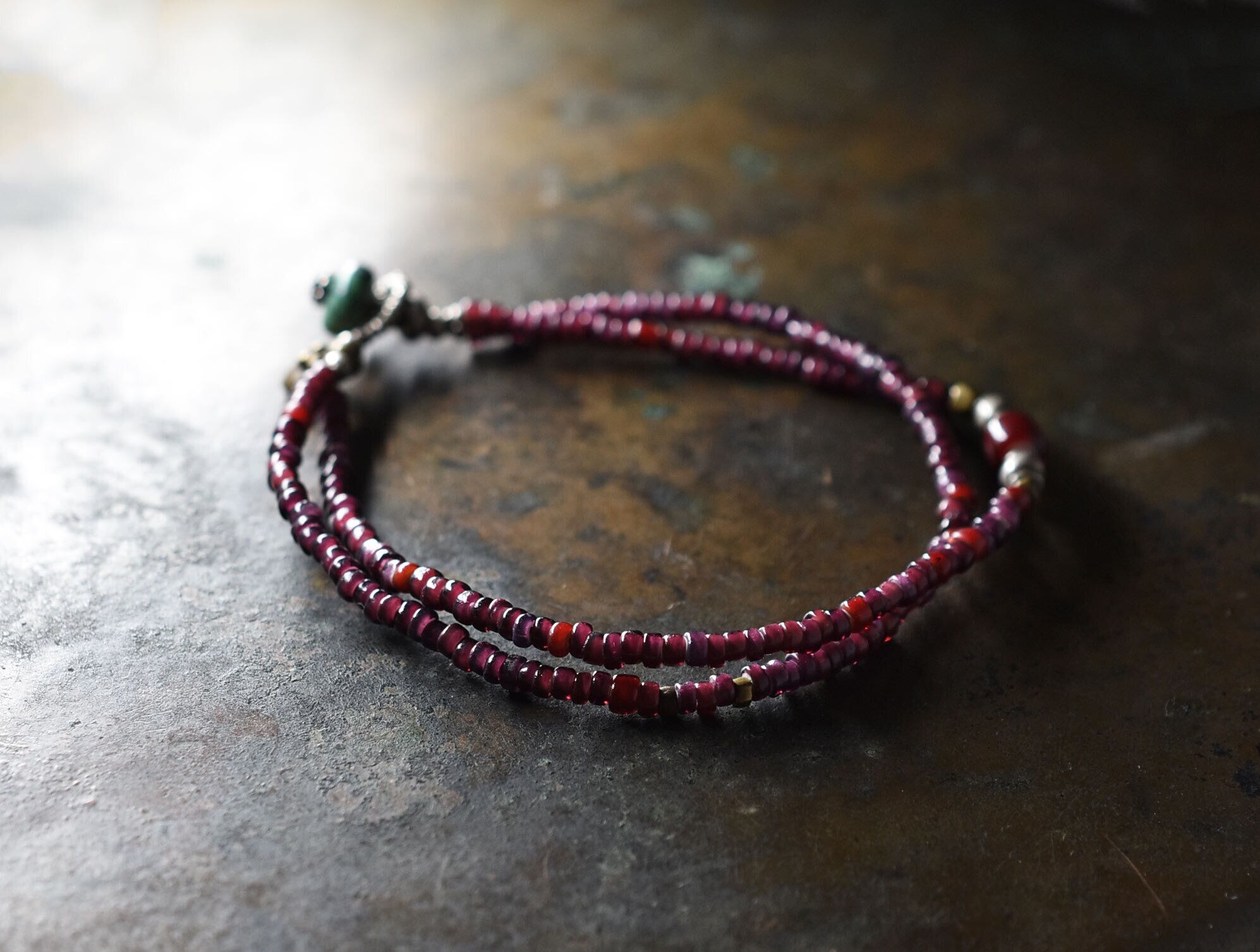 濃赤&葡萄色ホワイトハーツ、oldチンシルバー、oldオリッサブラスの2連ブレス