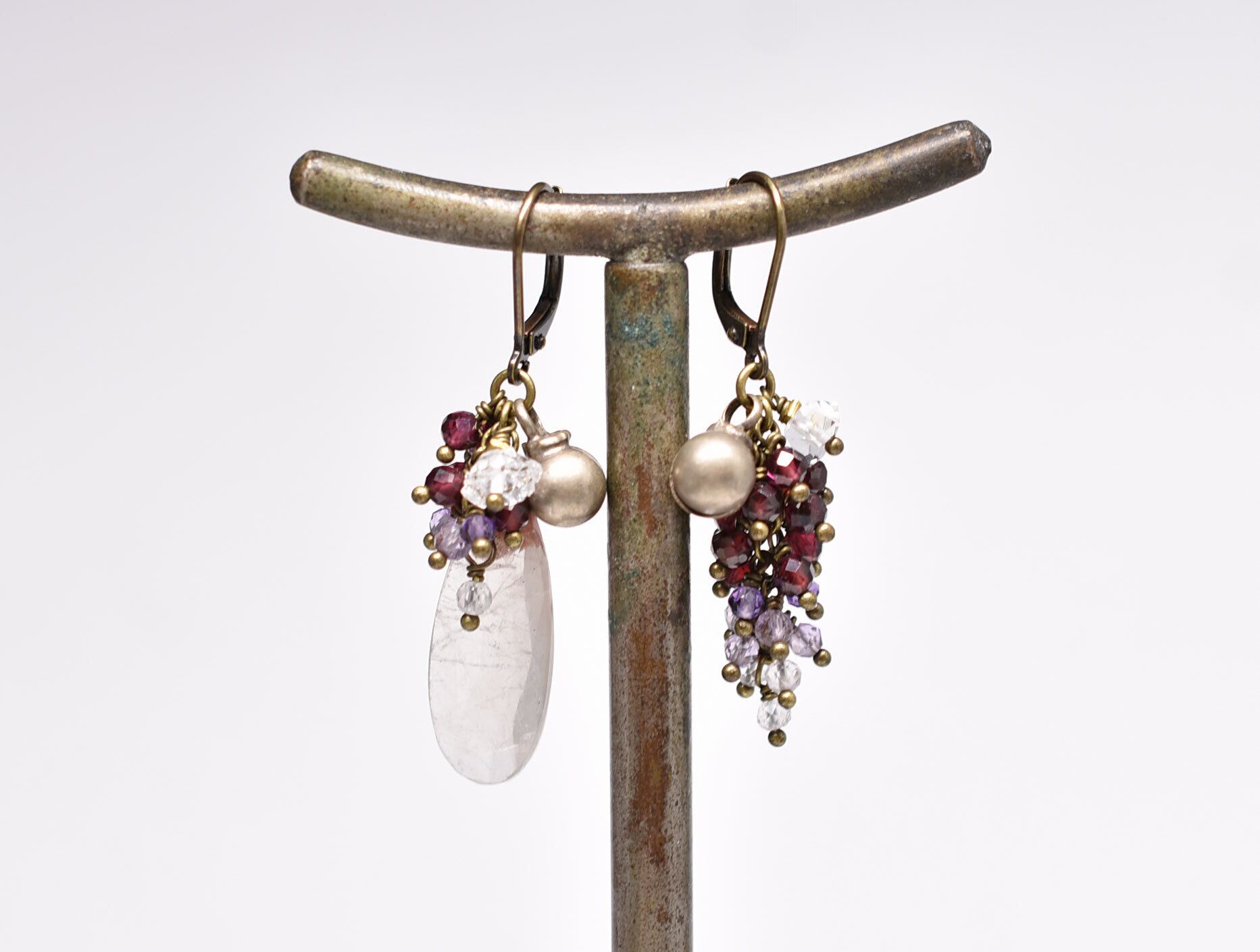 カットが施されたガーネット、アメジスト、小さなクォーツ(少しムーンズトーンを含みます。)をたわわに実らせました。
