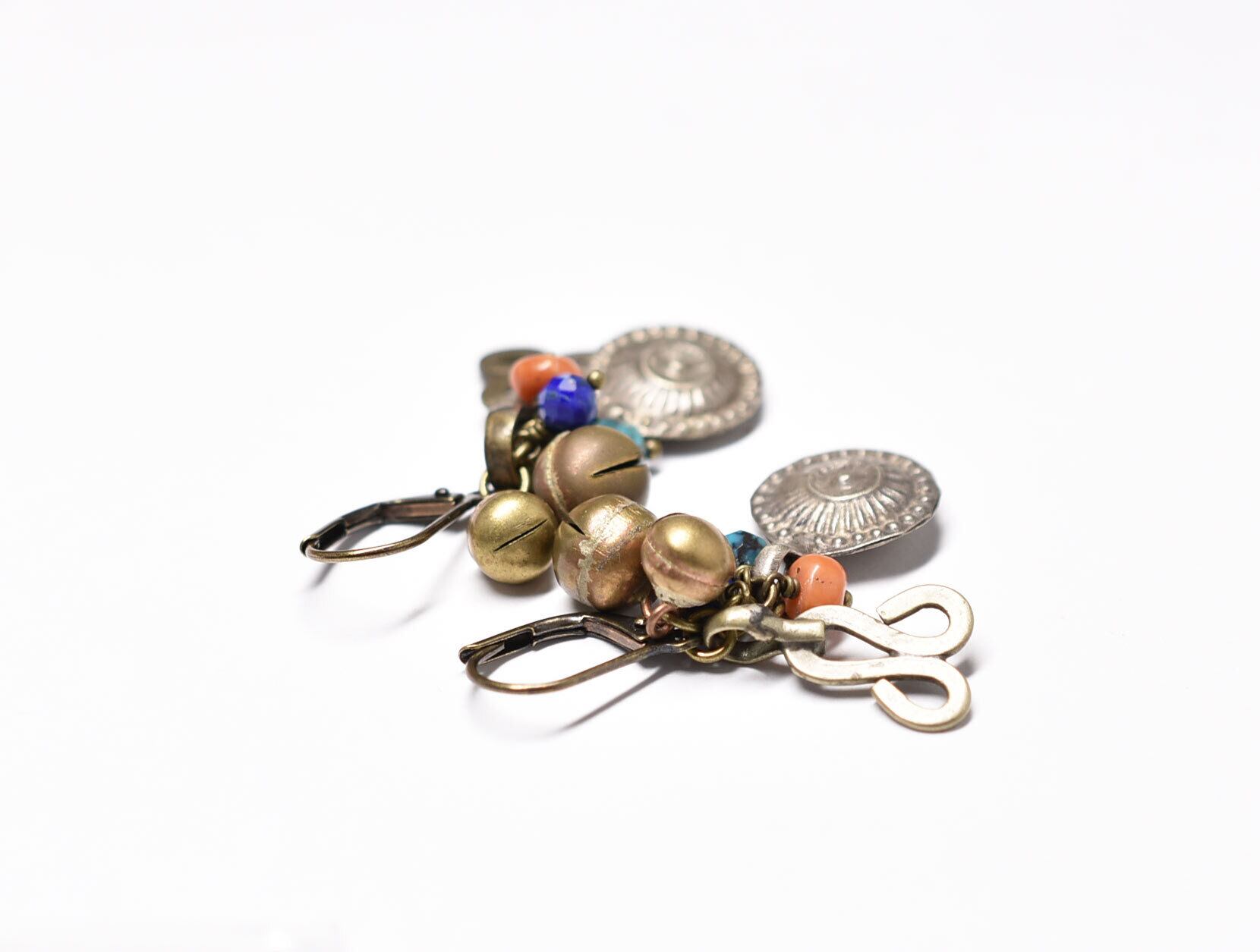 アフガンメタルと鈴、ターコイズ、oldネパールコーラル、ラピスのピアス