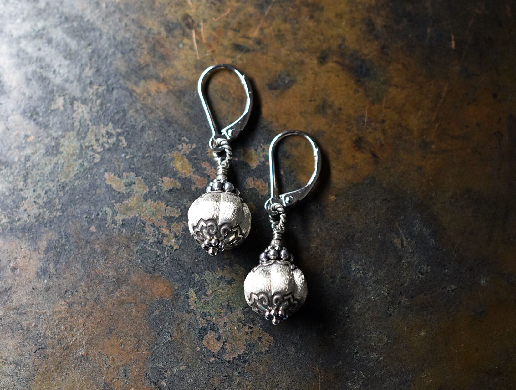 小さな上部のビーズ、二重螺旋の輪っかはカレンシルバーです。